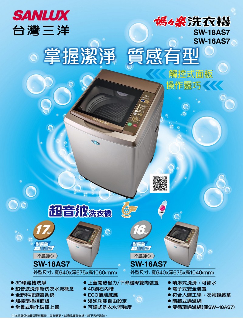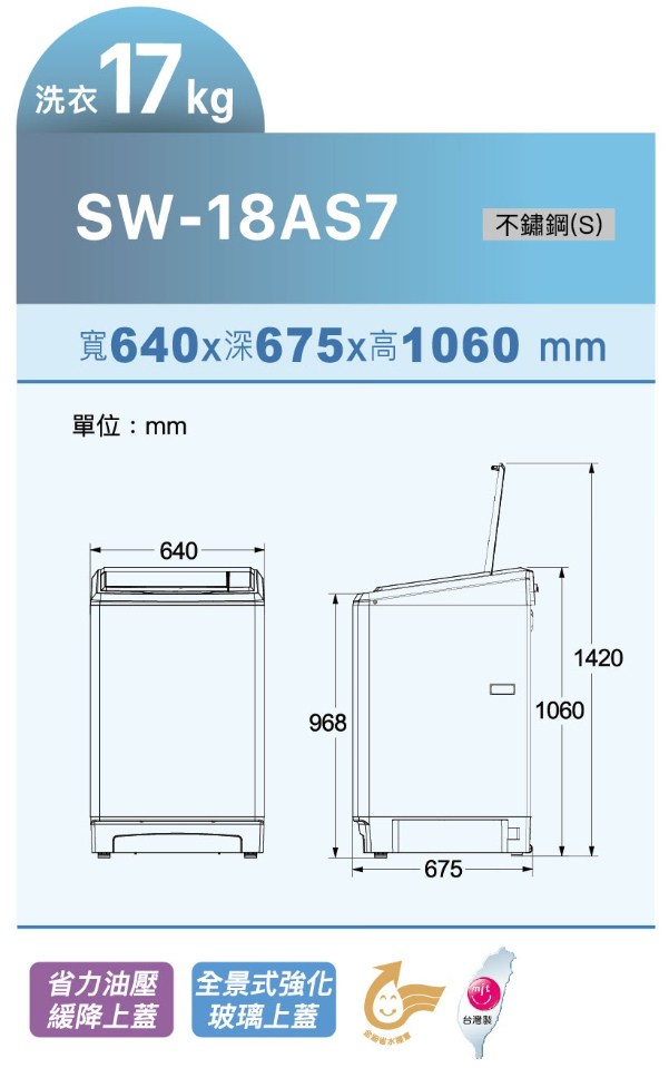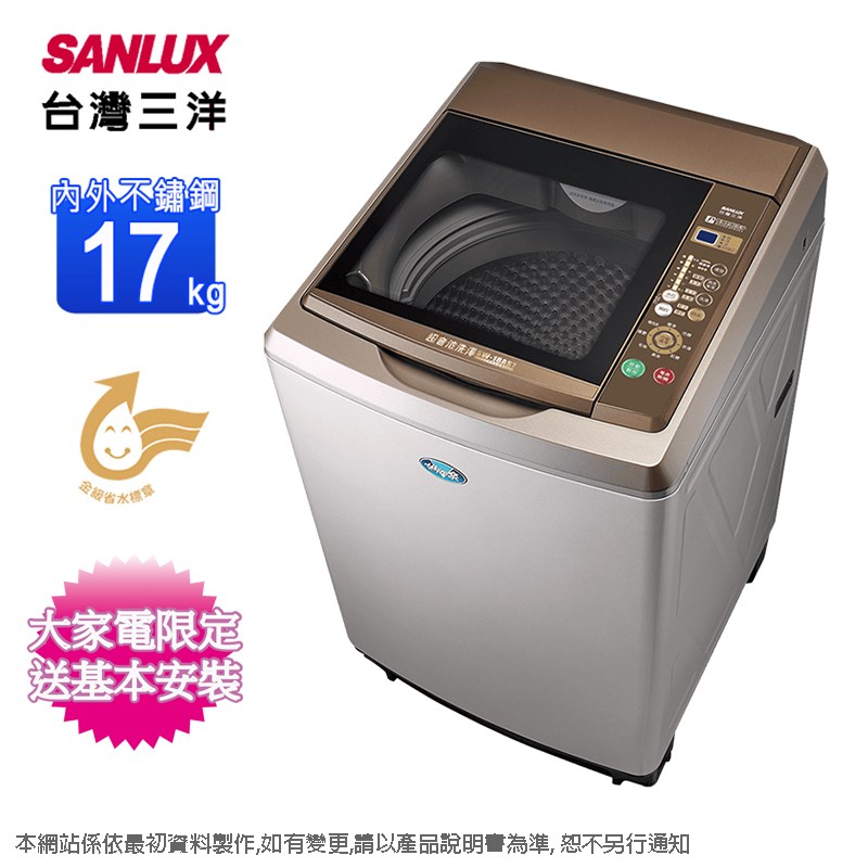 SANLUX台灣三洋17公斤定頻直立式洗衣機(內外不鏽鋼) SW-18AS7~含基本安裝+舊機回收