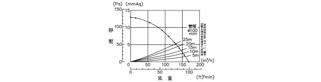 | 風量 (m3/h) | 0 | 15 | 53 | 87 | 106 | 124 | 138 | 155 | 170 |