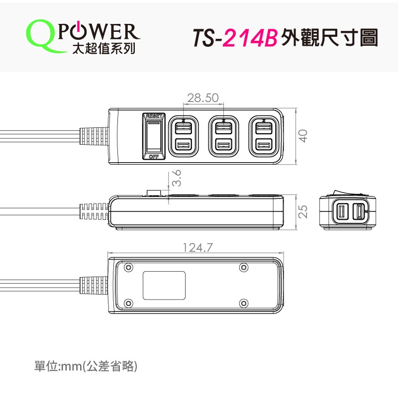 ●本體尺寸:長124.7mm x 寬40mm x 高28.6mm