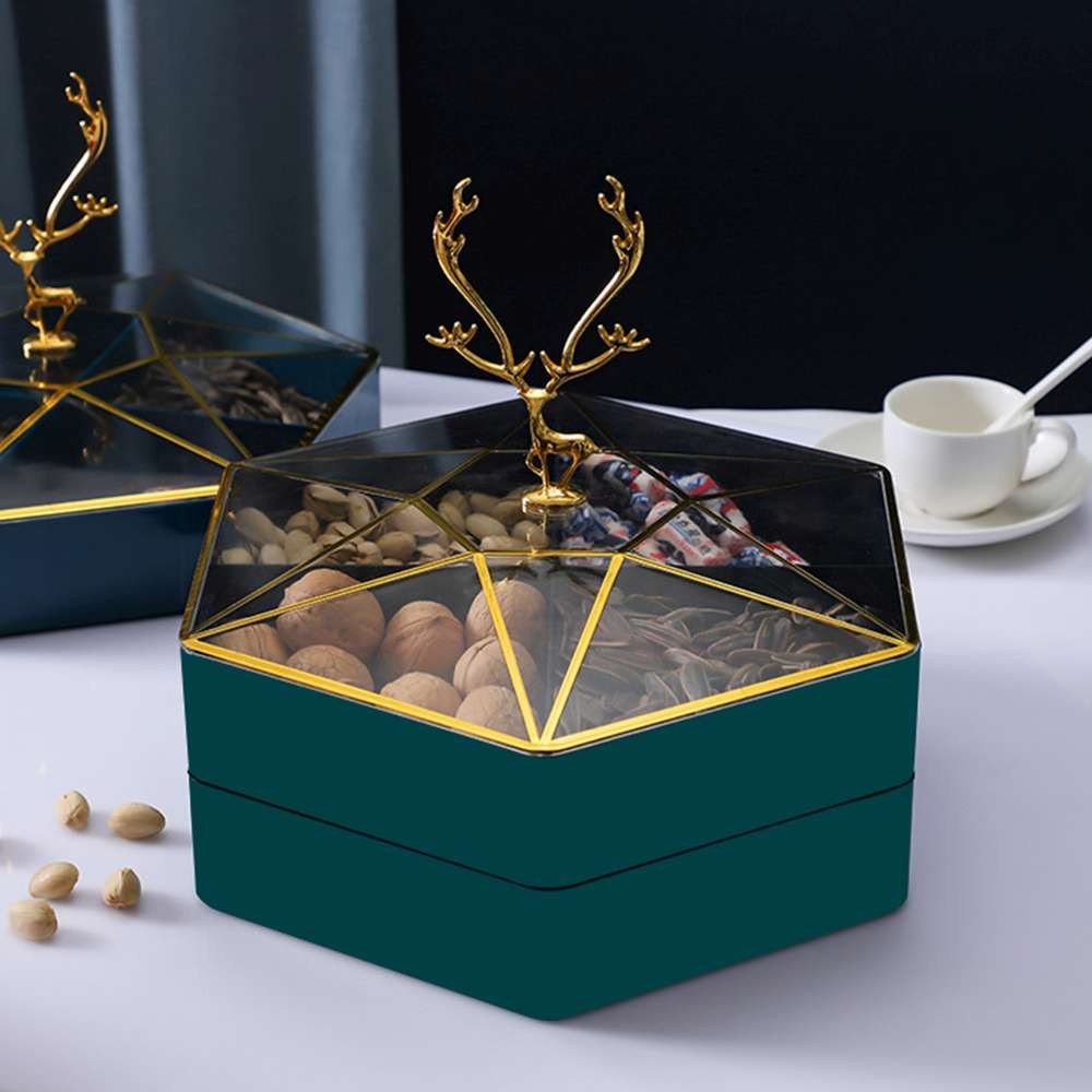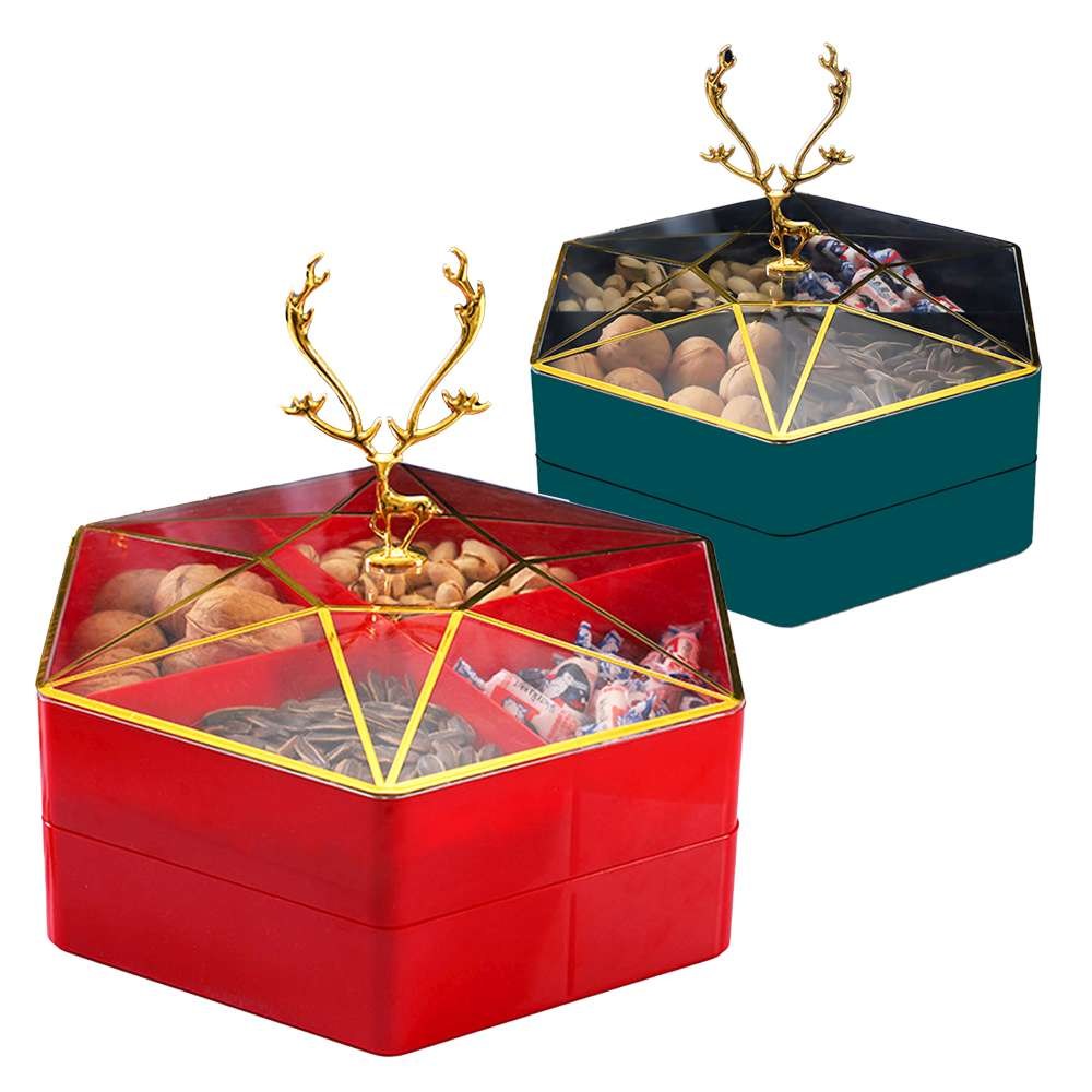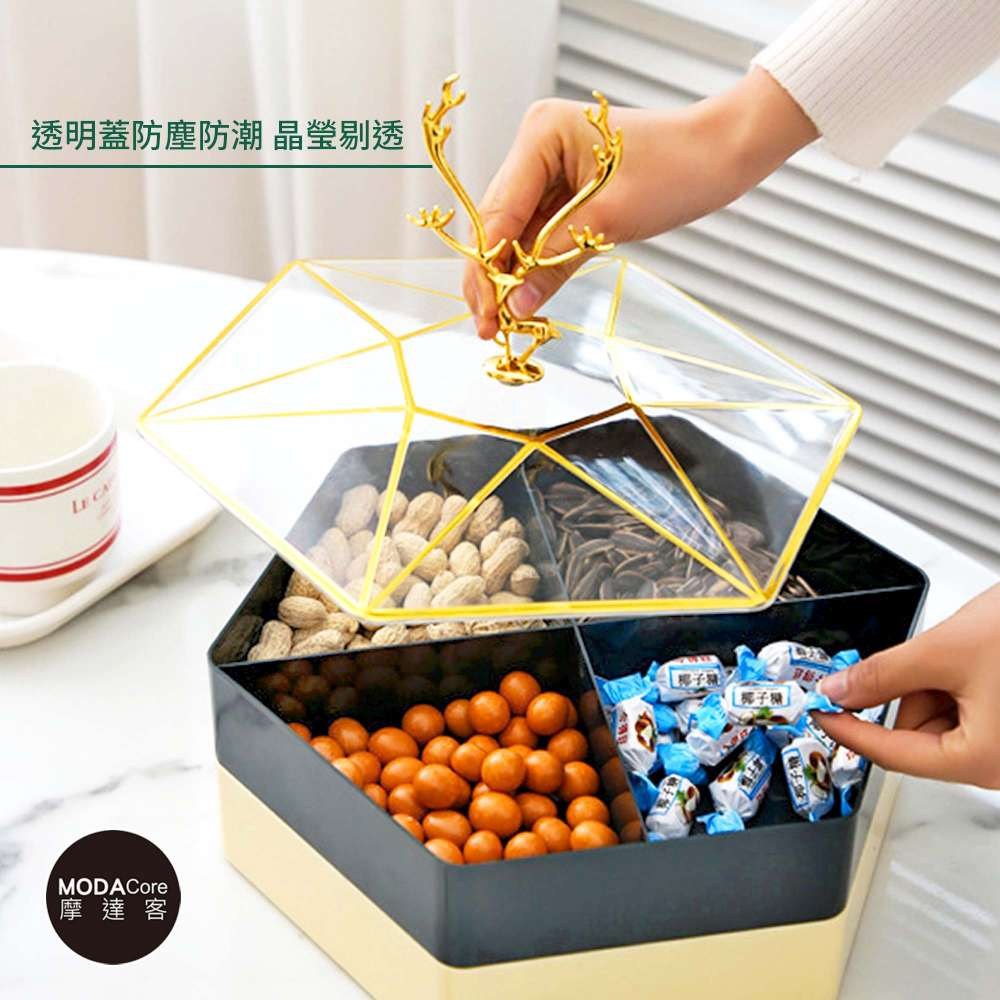 摩達客農曆春節開運◉金鹿送福開運糖果盒水果盤聚寶盆(紅/綠色兩色可選)紅色款