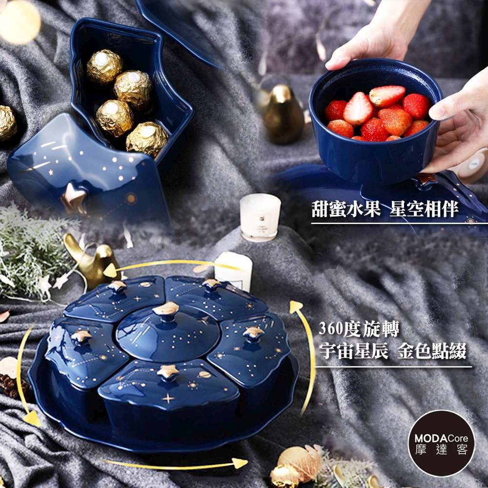 摩達客農曆春節開運◉高級星空可旋轉陶瓷精緻糖果盒水果盤聚寶盆單入