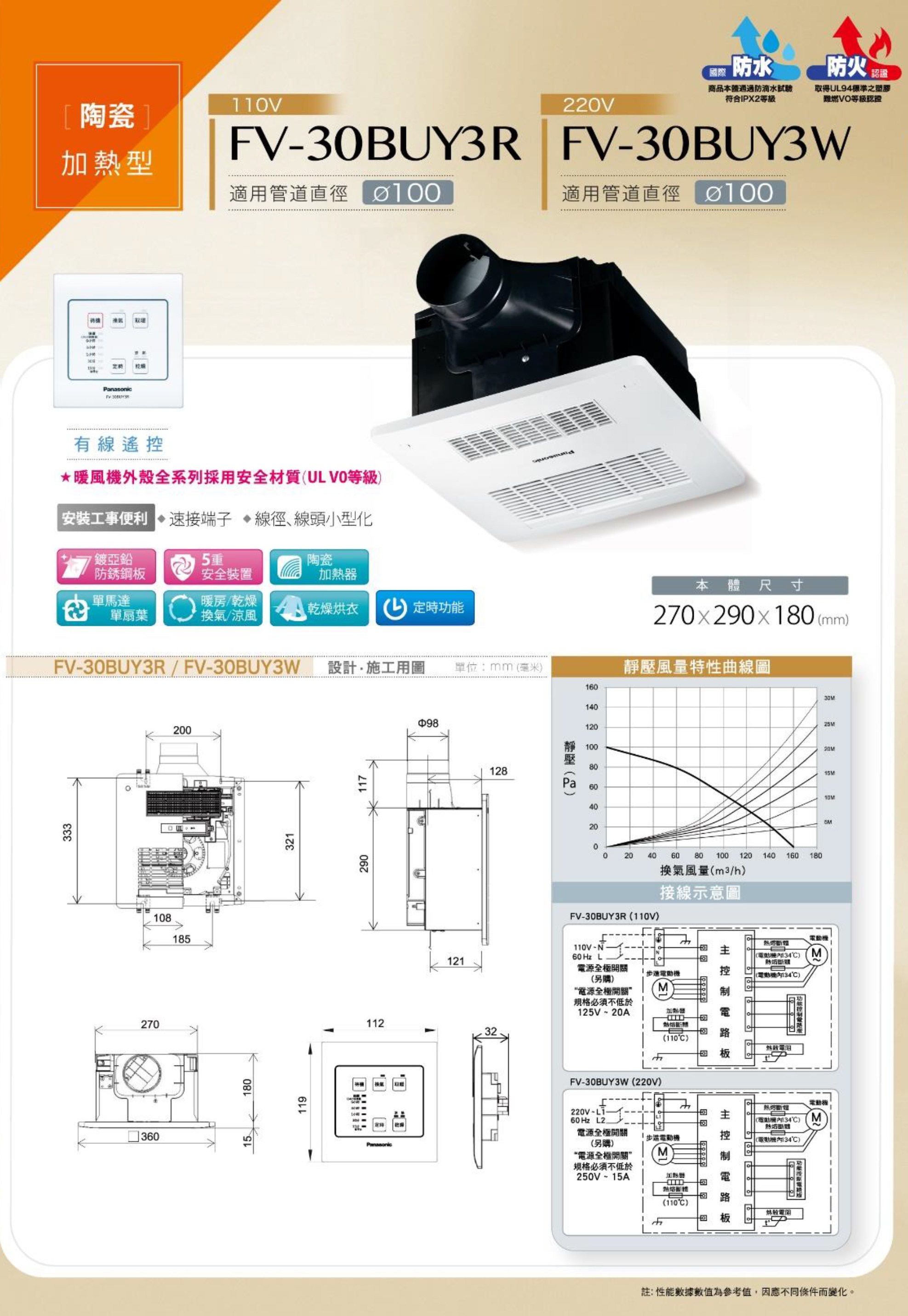 【Panasonic 國際牌】FV-30BD1R,110V,暖風機,無線遙控(不含安裝)