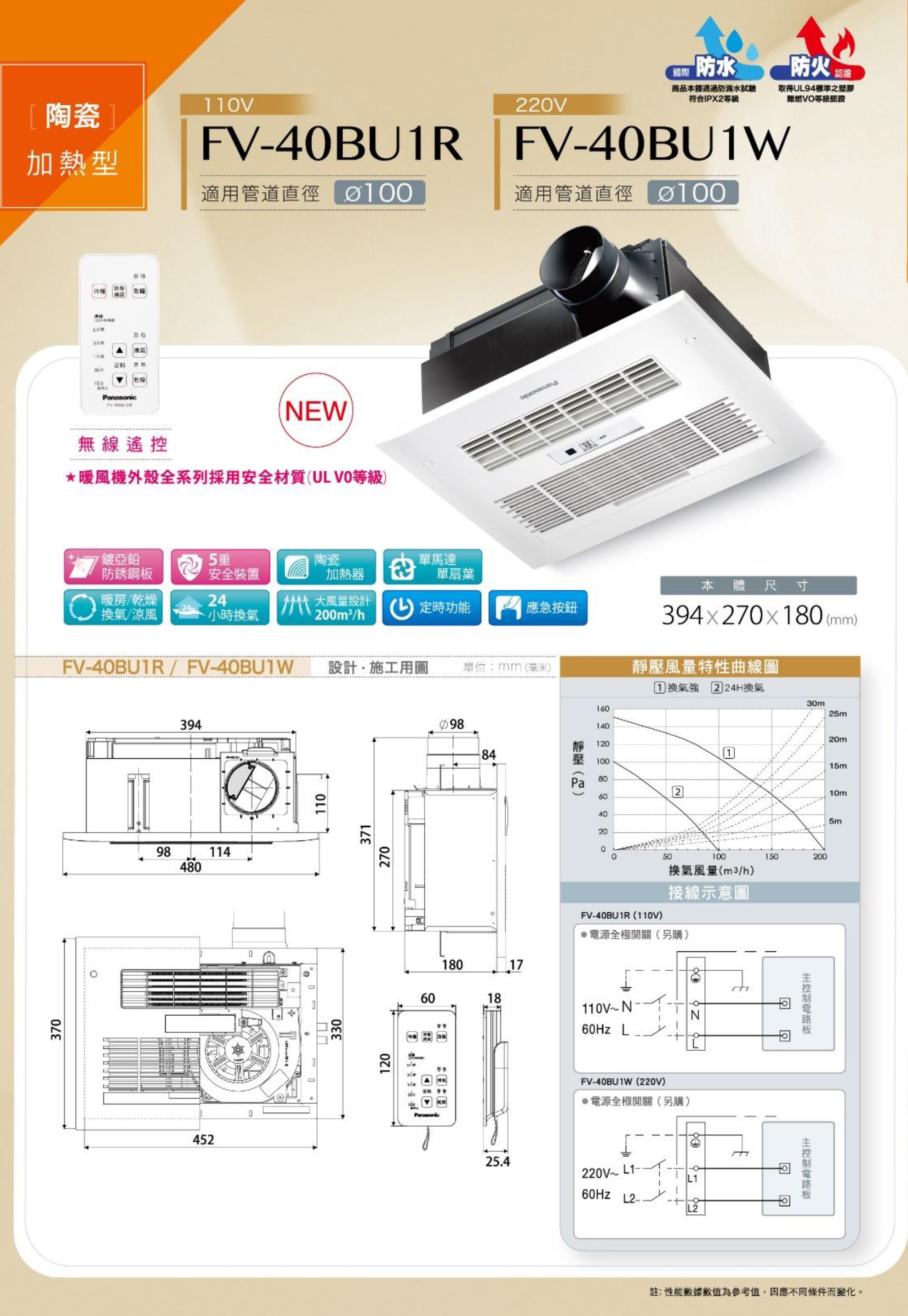 國際牌Panasonic FV-40BU1R 遙控110V 浴室涼暖風換氣乾燥機(不含安裝)