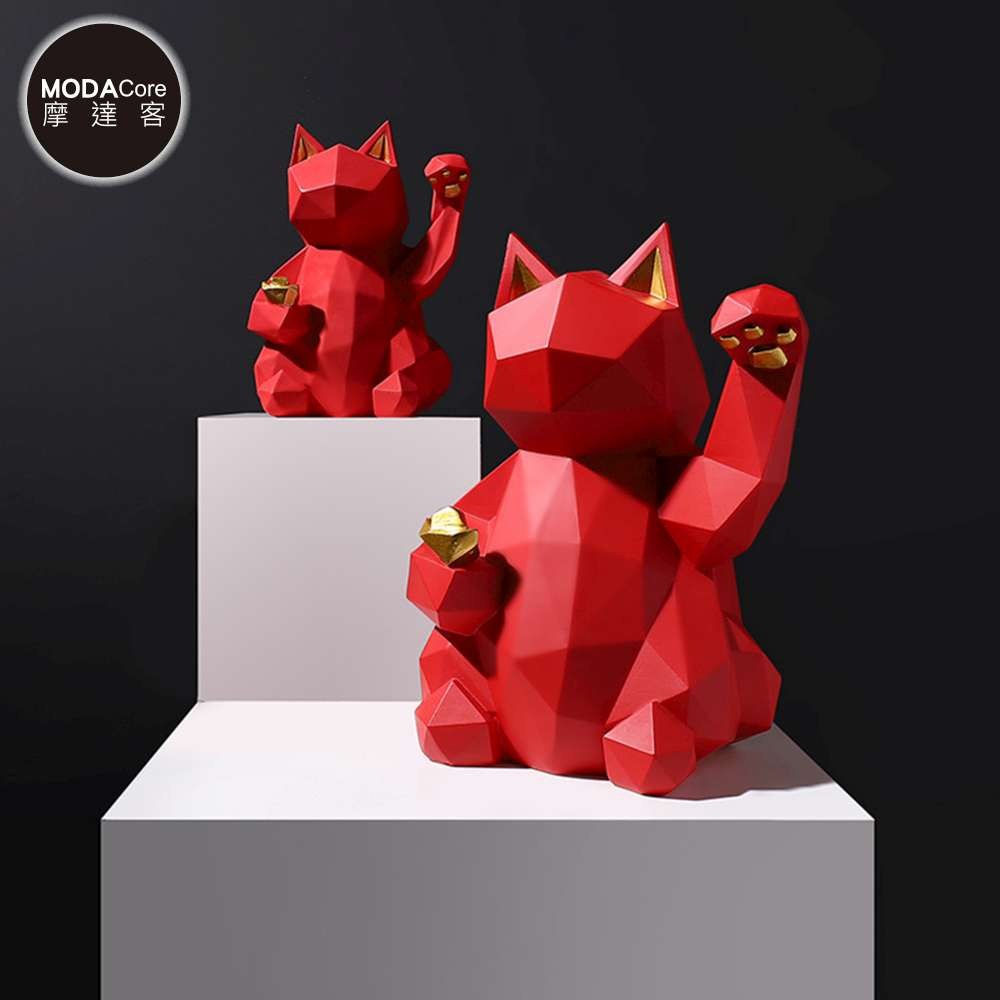 摩達客◉現代藝術紅色設計師招財貓(小)開運喵星人擺飾單入