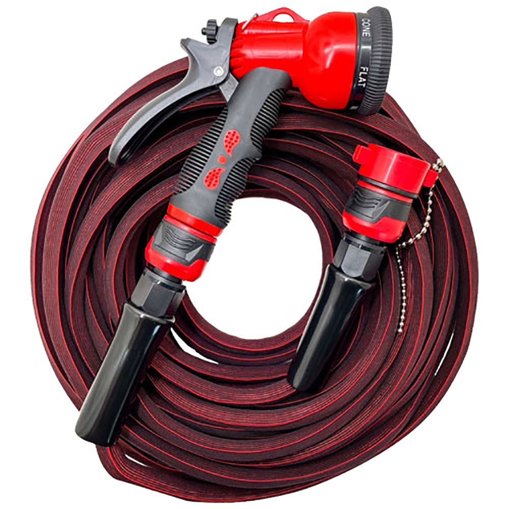 內容物:15米伸縮五分水管 搭配紅/黑雙色TPR塑膠歐規快接接頭配軟握把;吊鍊水龍頭接頭;6段水花水槍配奶嘴
