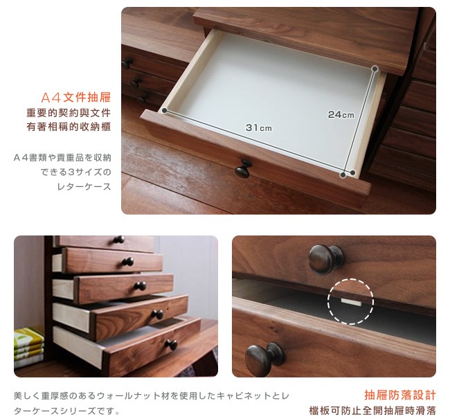◆ A4規格,抽屜檔板防落設計