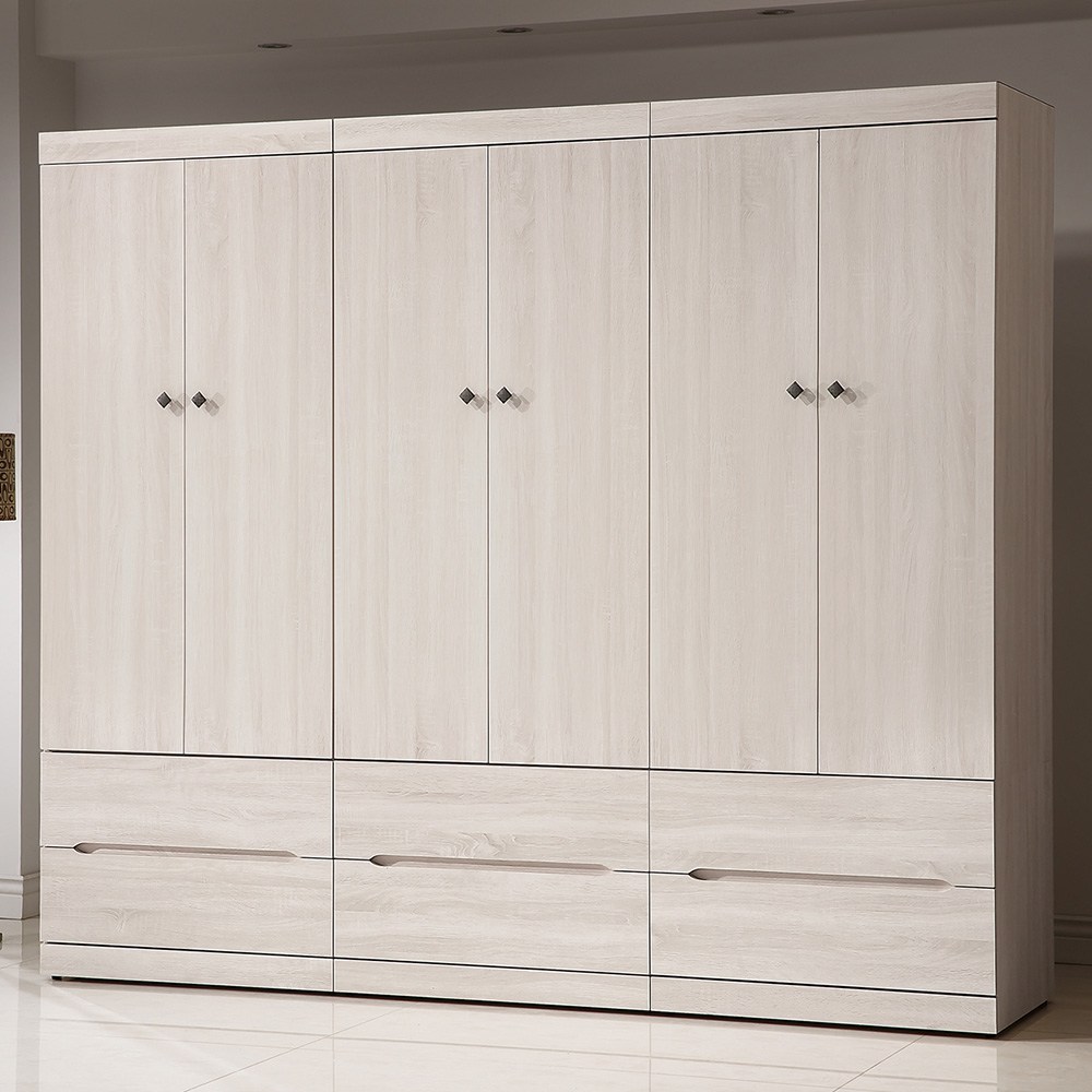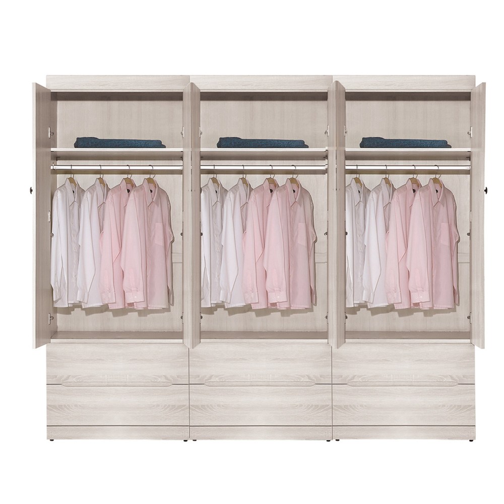 直人木業-北歐白楓木標準衣櫃270公分(三抽75公分+配色雙門75公分+全白雙門75公分+開放櫃45公分)