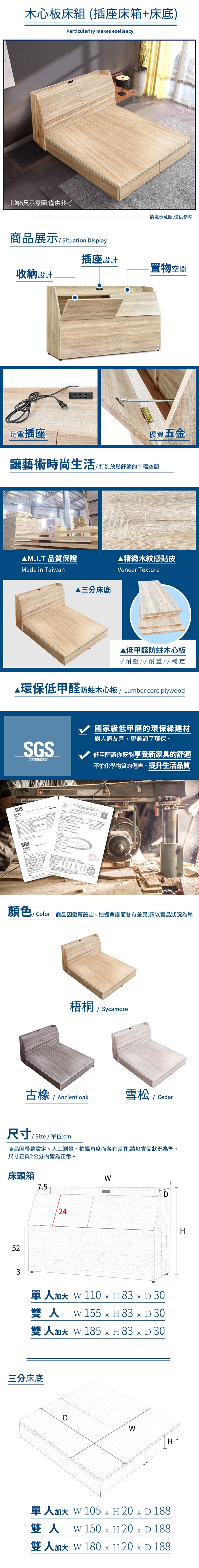 傢俱工場-吉米 MIT木心板床組 (插座床箱+床底) - 單大3.5尺梧桐