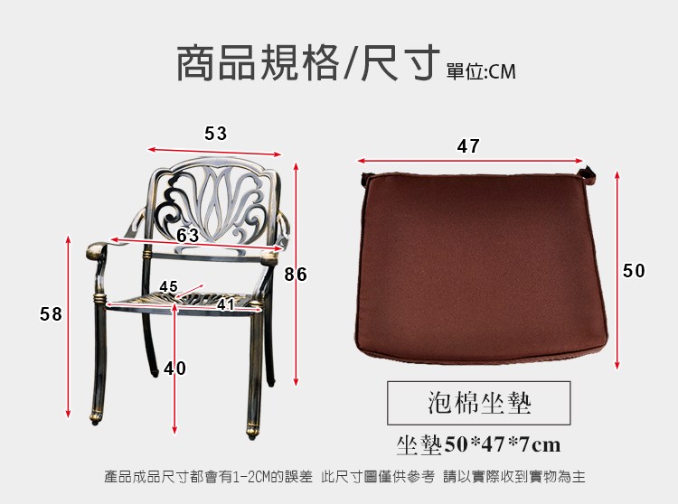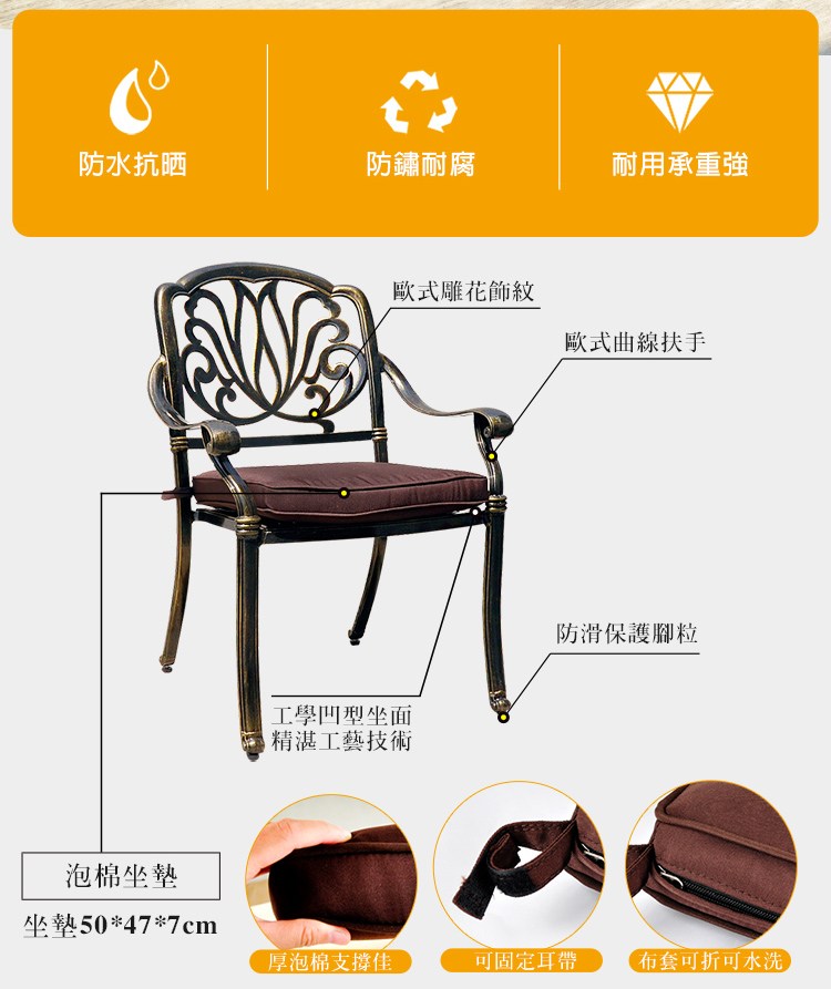 【LOGIS】萬象藤鋁合金鑄鐵椅(含坐墊 戶外椅 休憩椅)CH-A