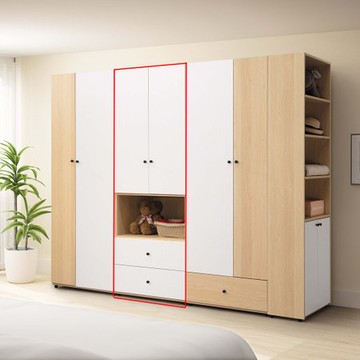 直人木業-北歐白楓木標準衣櫃270公分(三抽75公分+配色雙門75公分+全白雙門75公分+開放櫃45公分)