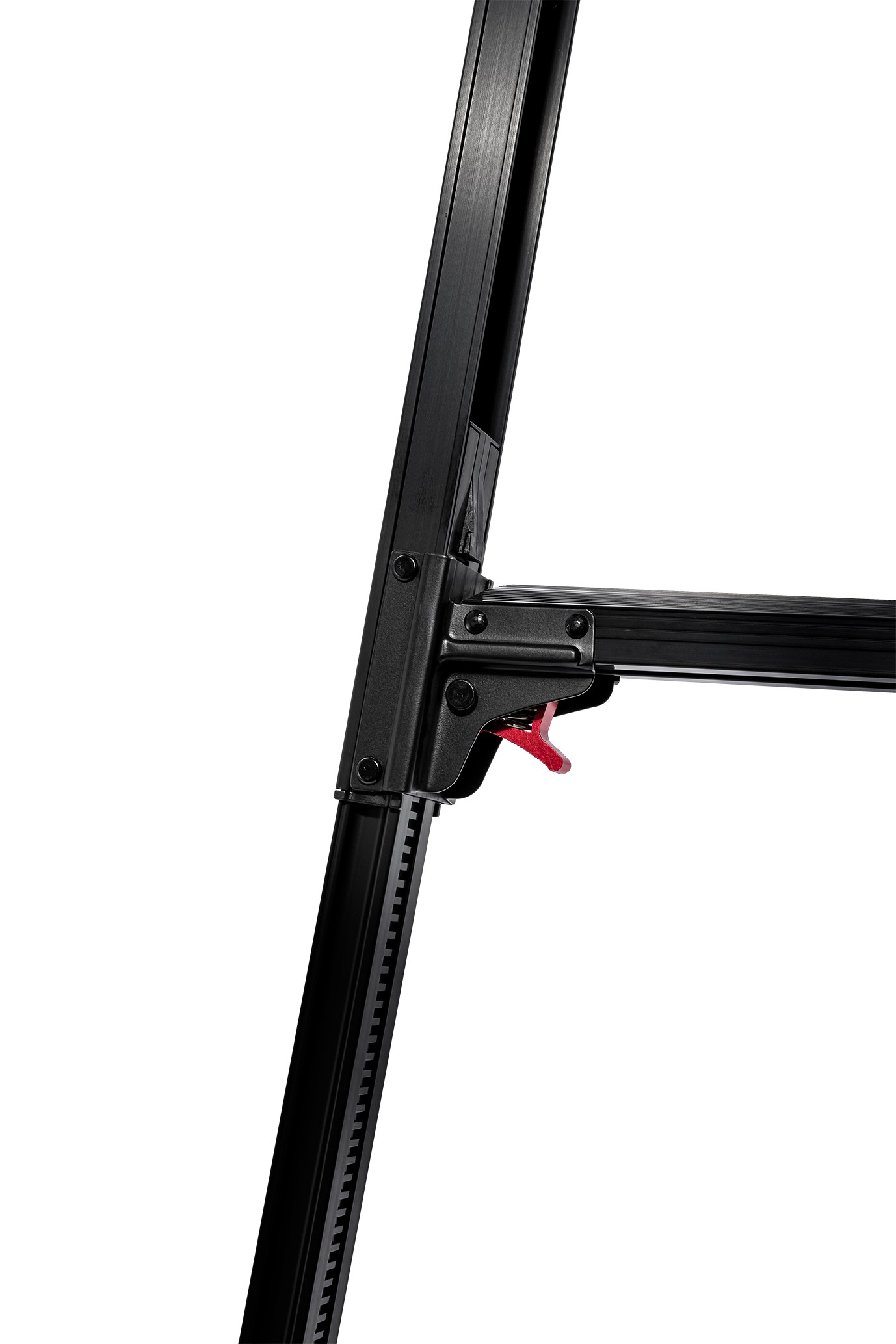 2.按壓紅桿可快速收闔鋁梯,使用更有效率