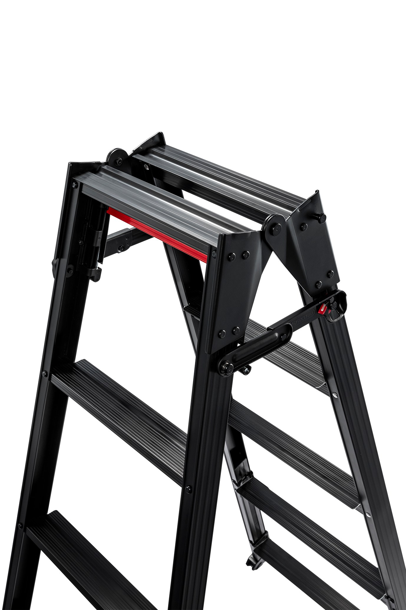 2.按壓紅桿可快速收闔鋁梯,使用更有效率