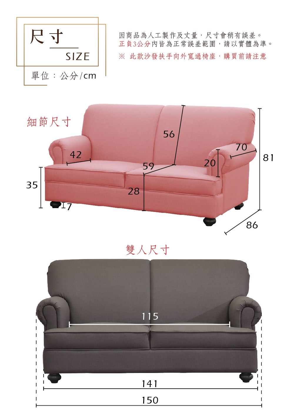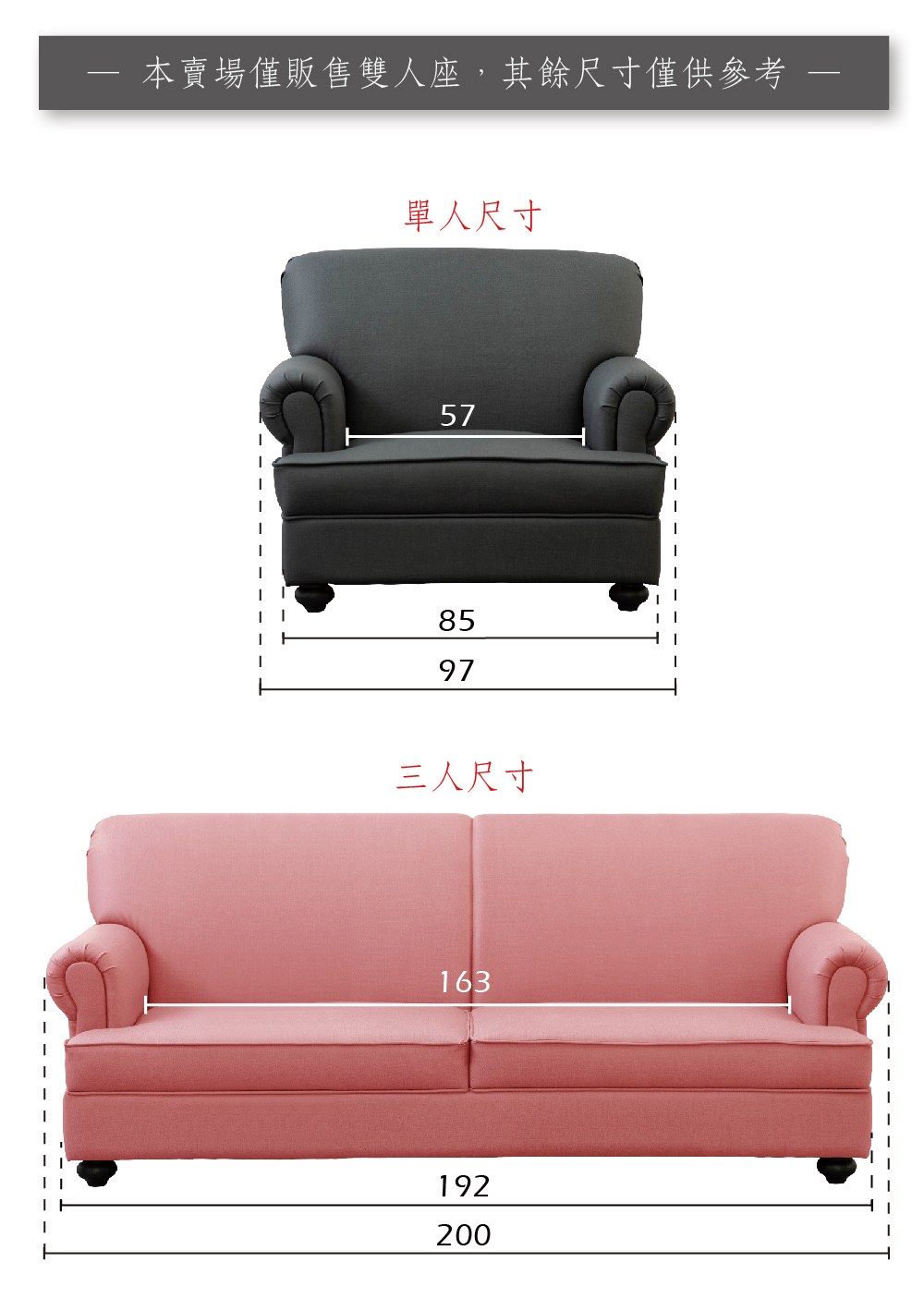 【UHO】新古典貓抓皮三人沙發19粉紅