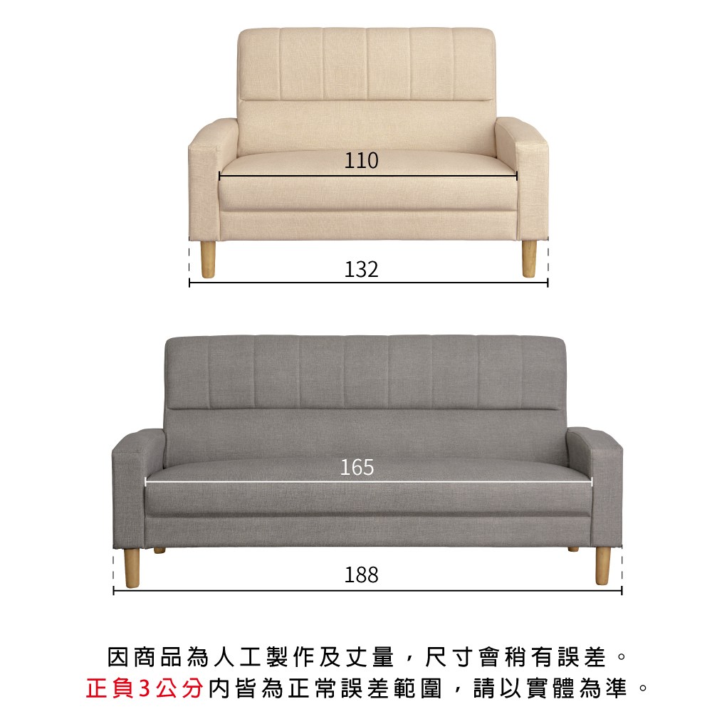 伊登貓抓布沙發 兩人 亞麻灰