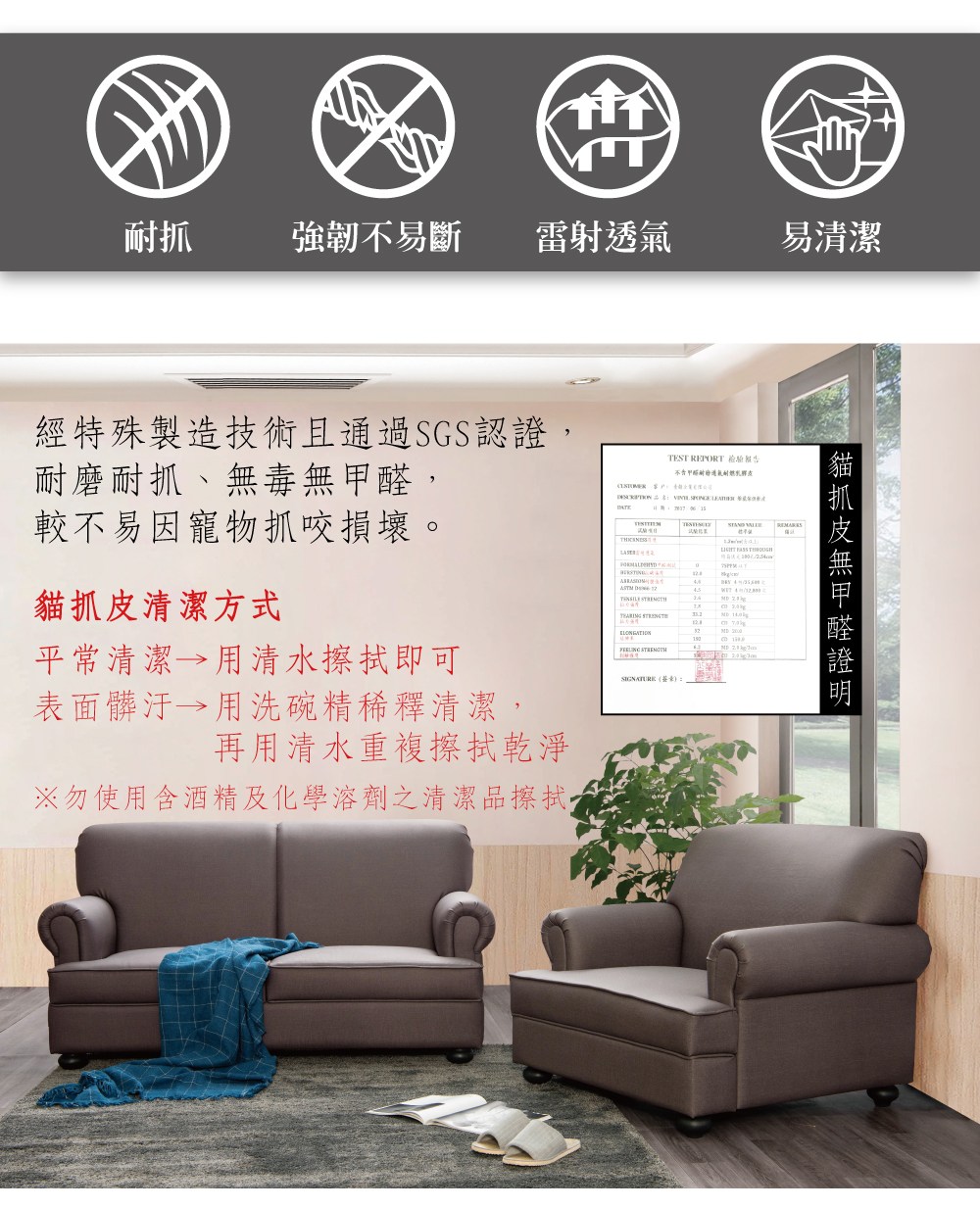 IHouse-夢拉 細柔親膚貓抓皮獨立筒沙發 1+2+3人座雲灰色#04
