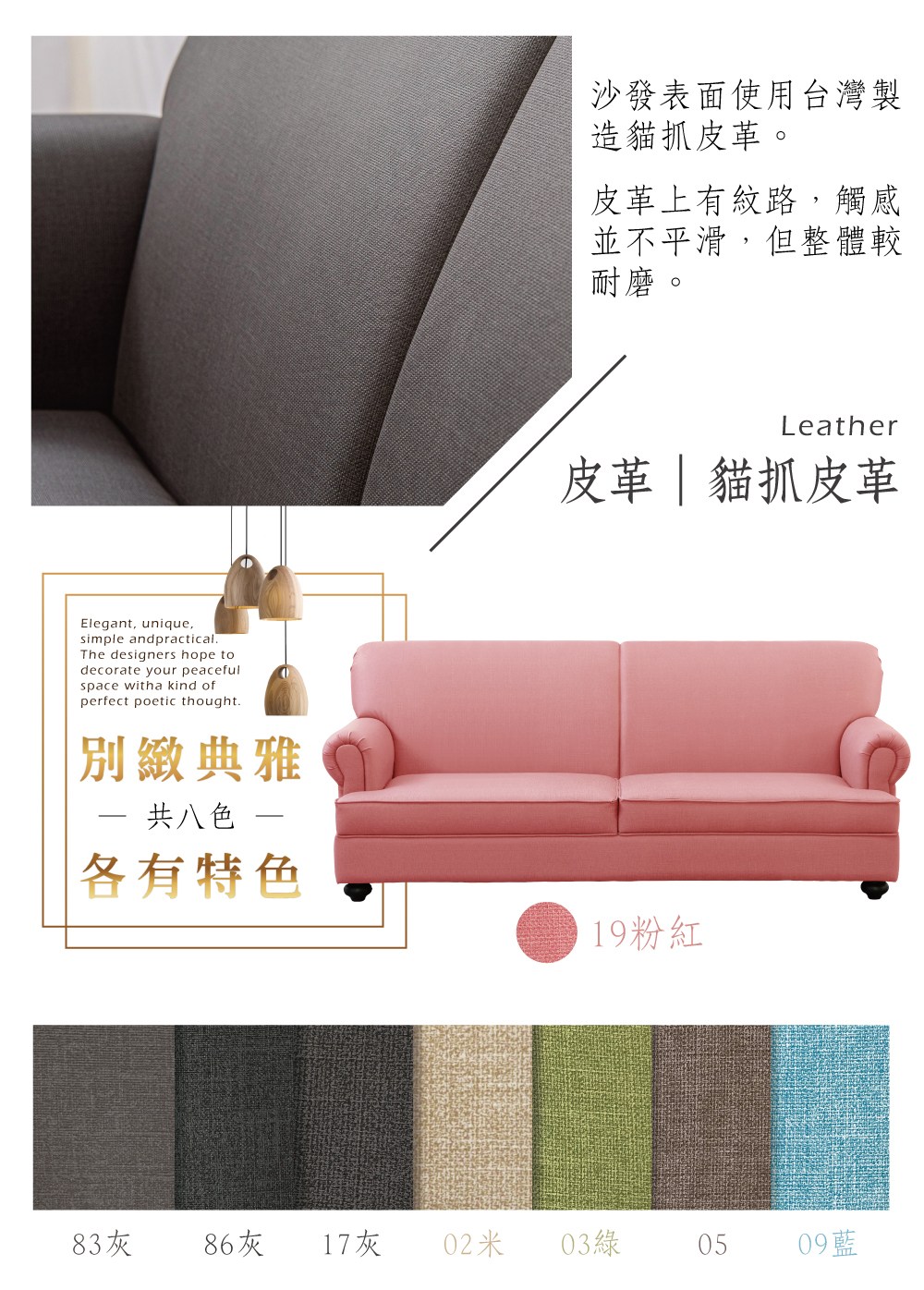 【UHO】新古典貓抓皮三人沙發19粉紅