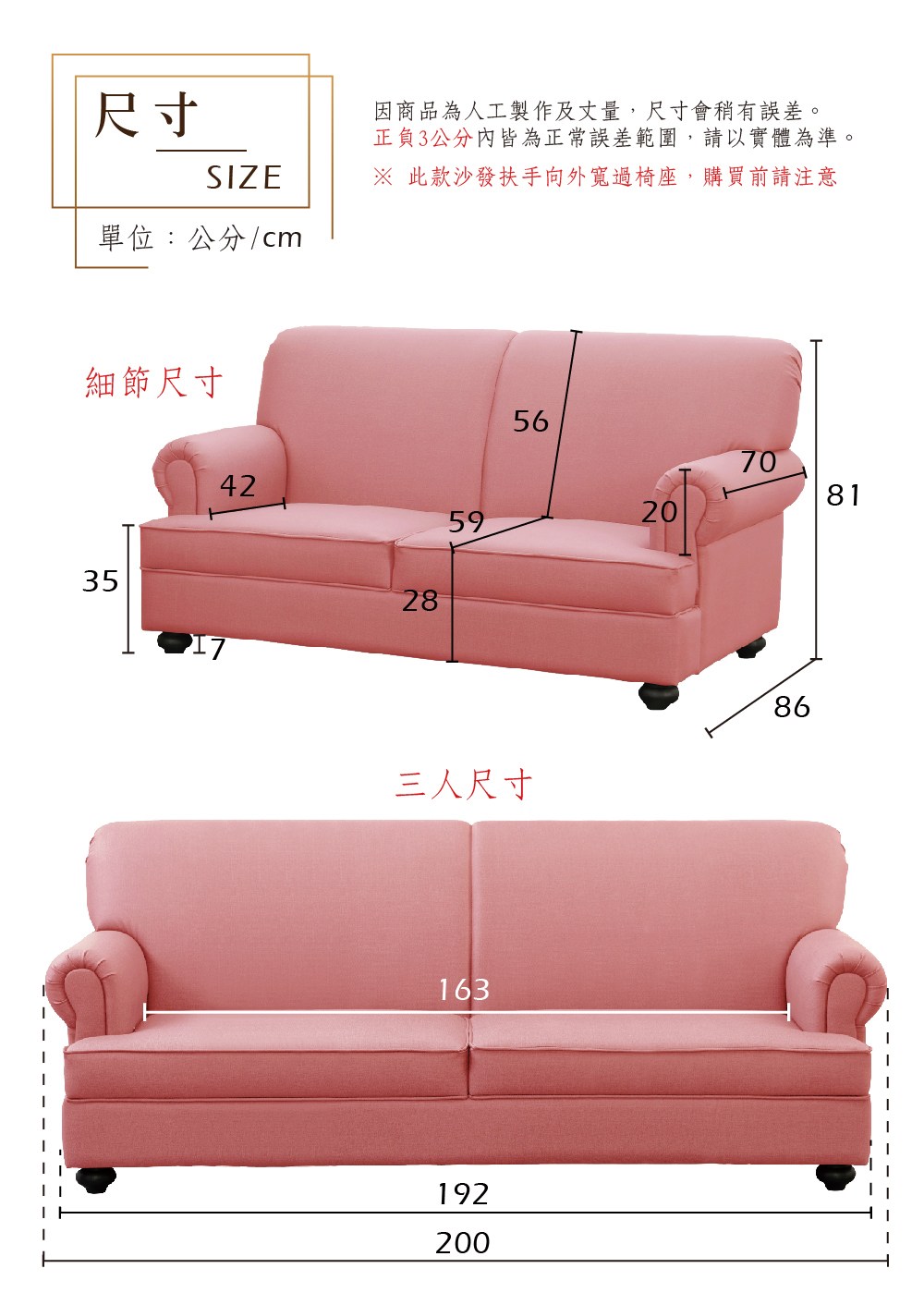【UHO】新古典貓抓皮三人沙發19粉紅
