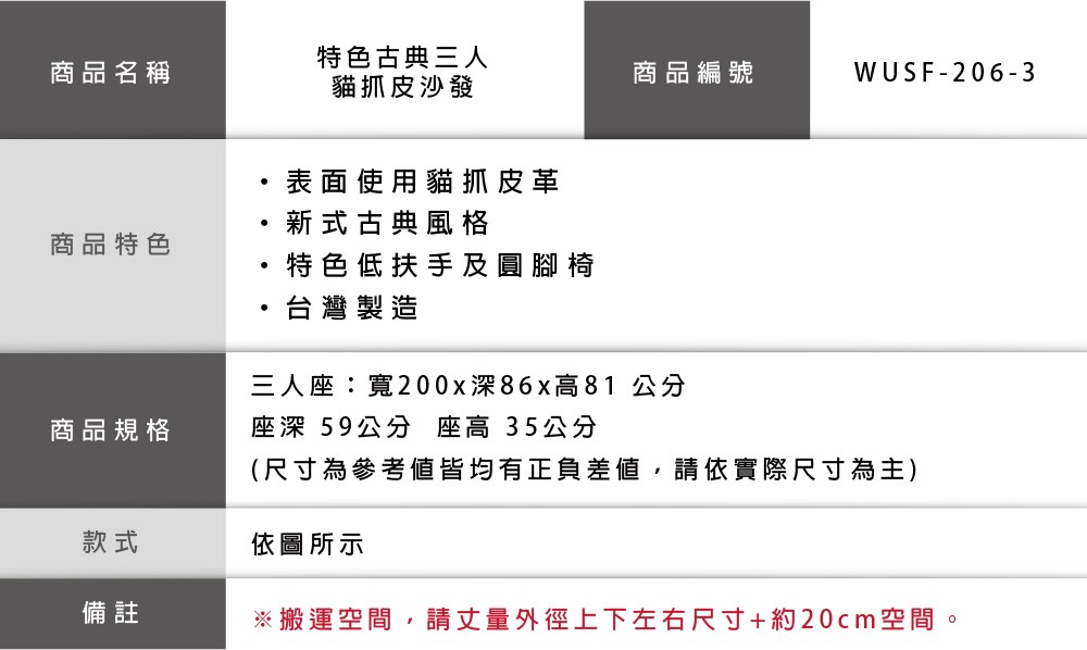 【UHO】新古典貓抓皮三人沙發19粉紅