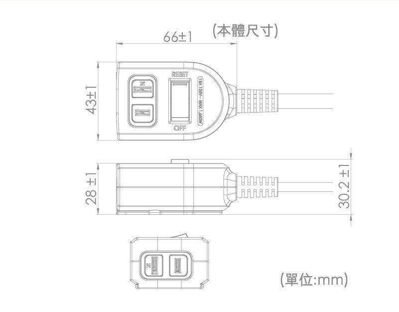 .商品名稱:保護傘 PU-2122 1切2座2P延長線
