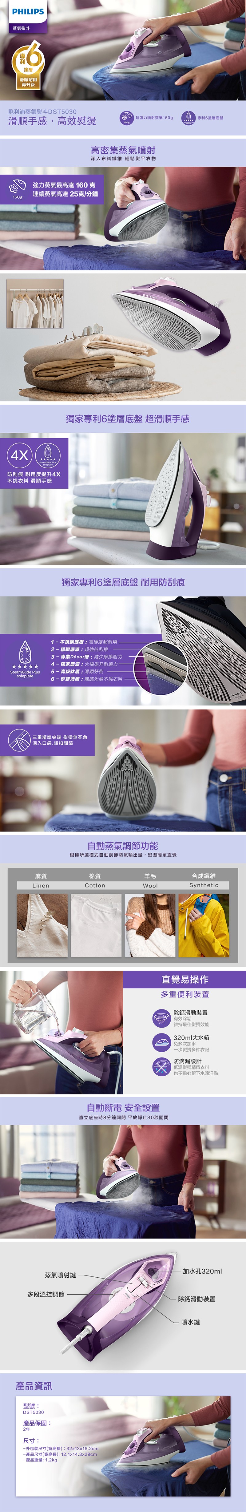 【Philips】垂直+水平蒸氣熨斗 (DST5030)