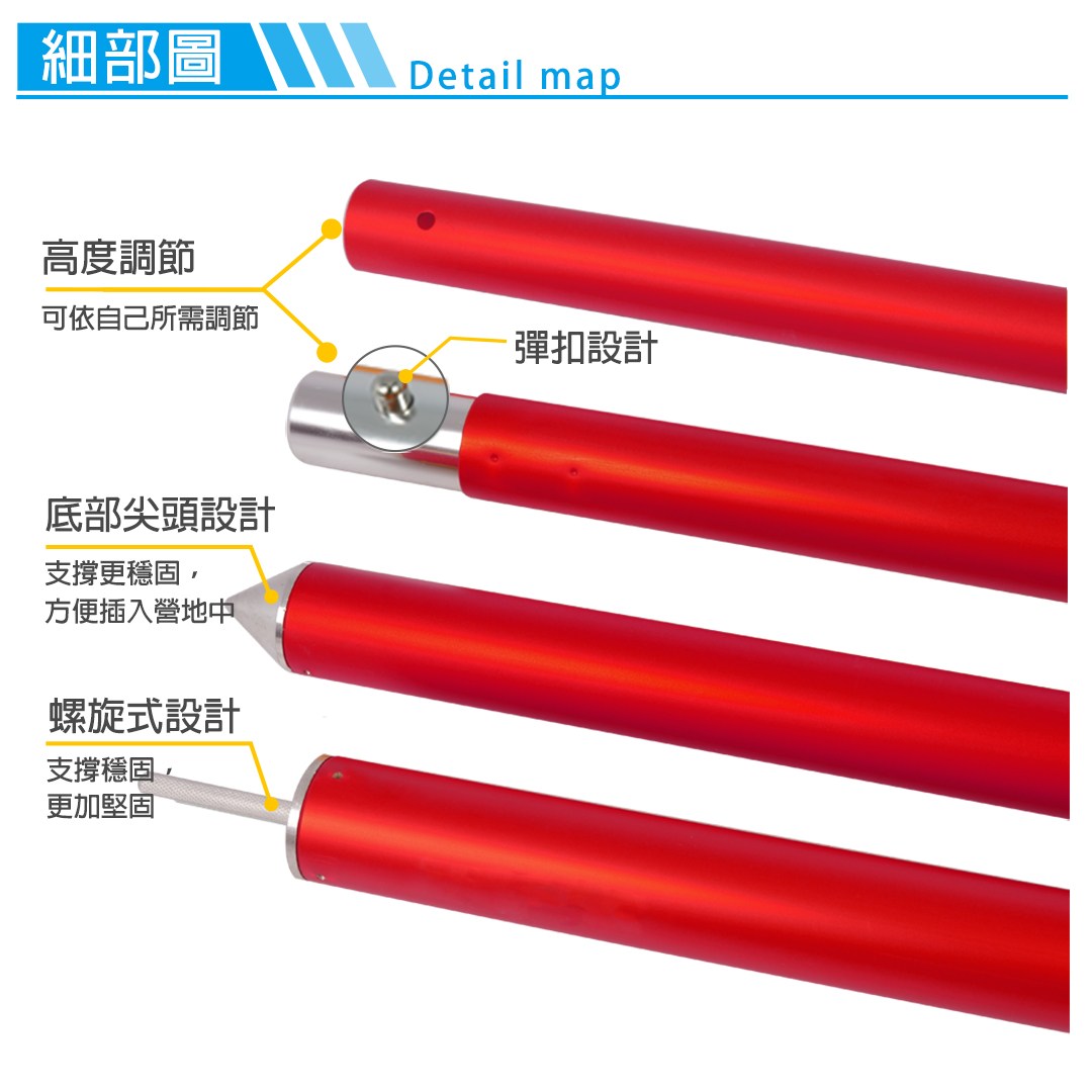 搭配大型天幕使用,支撐天幕前後中間,特粗款支撐最有力。