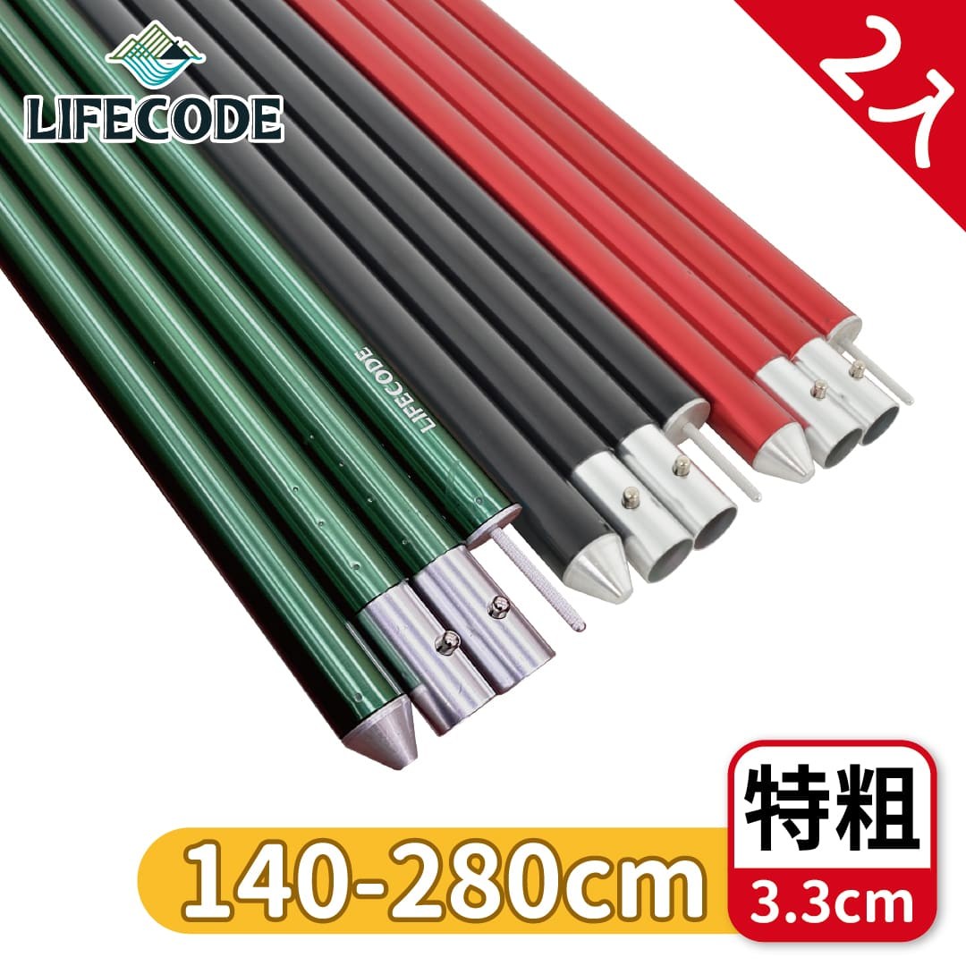 LIFECODE-鋁合金四截伸縮營柱桿(140-280CM)-3.3cm特粗款2入(附揹袋)12310071/4/8大紅色/軍綠/黑色