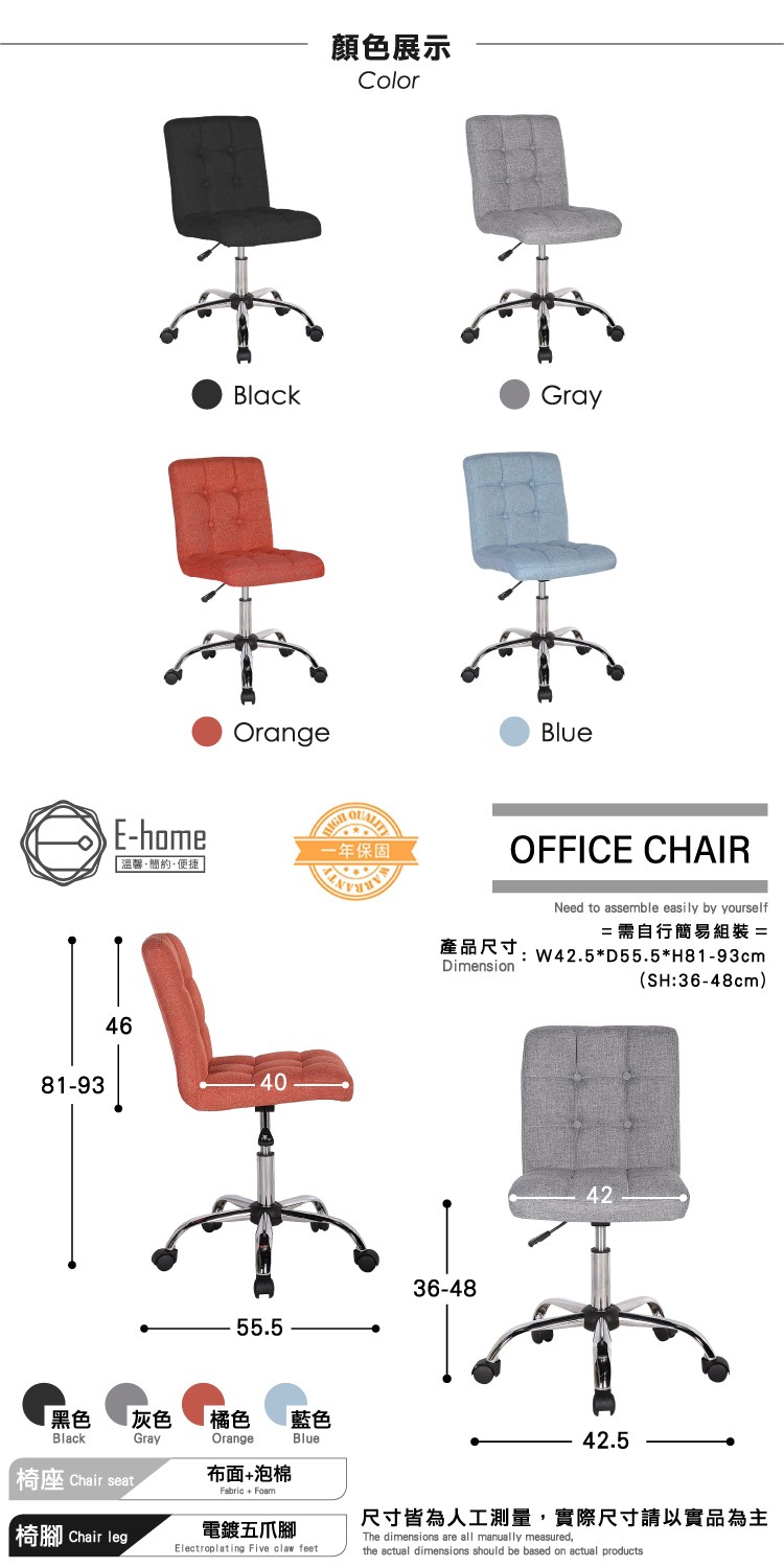 E-home Alice埃利斯可調式布面方格電腦椅-四色可選
