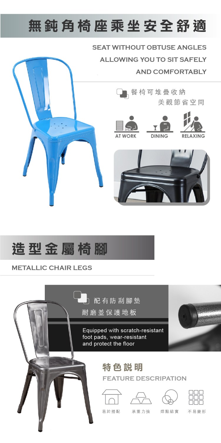 * 餐椅可堆疊收納、美觀節省空間