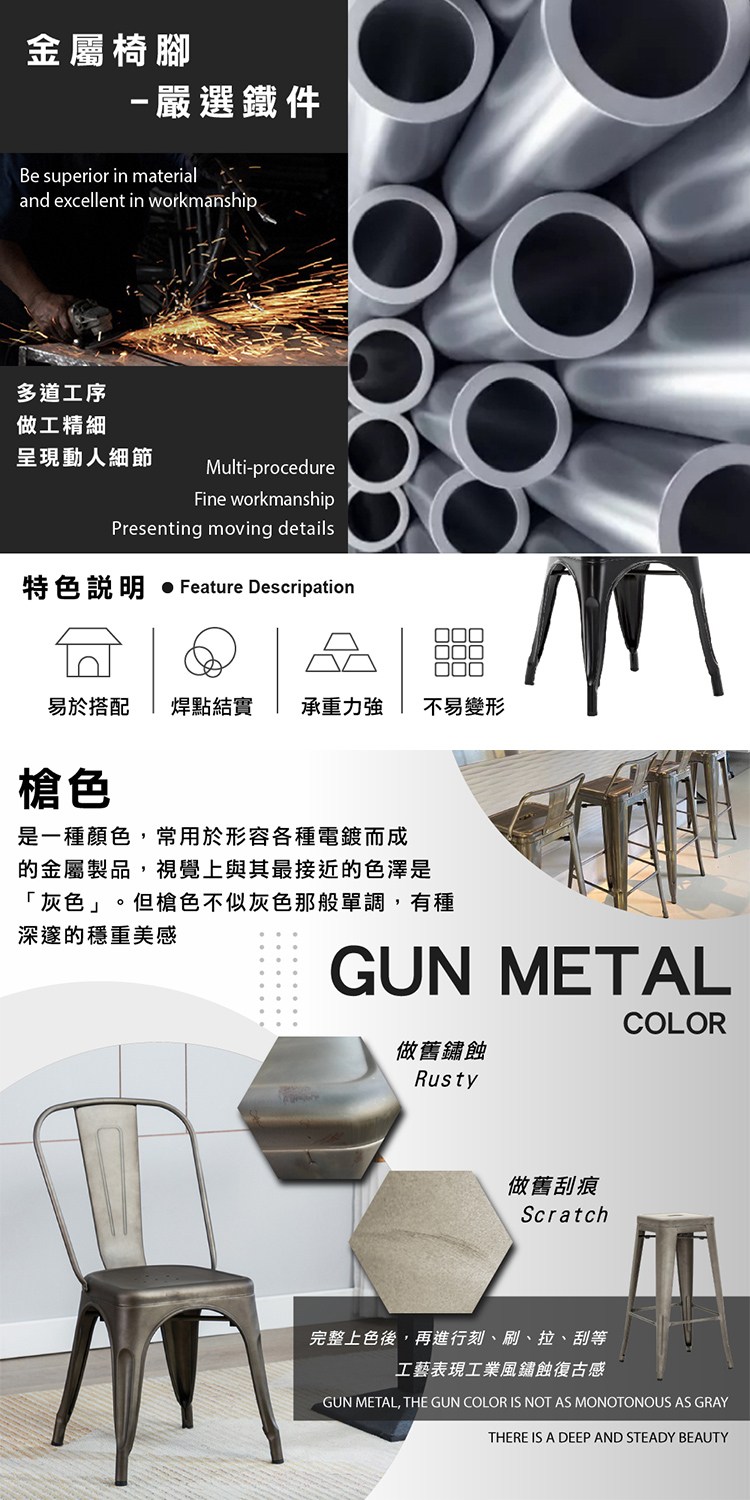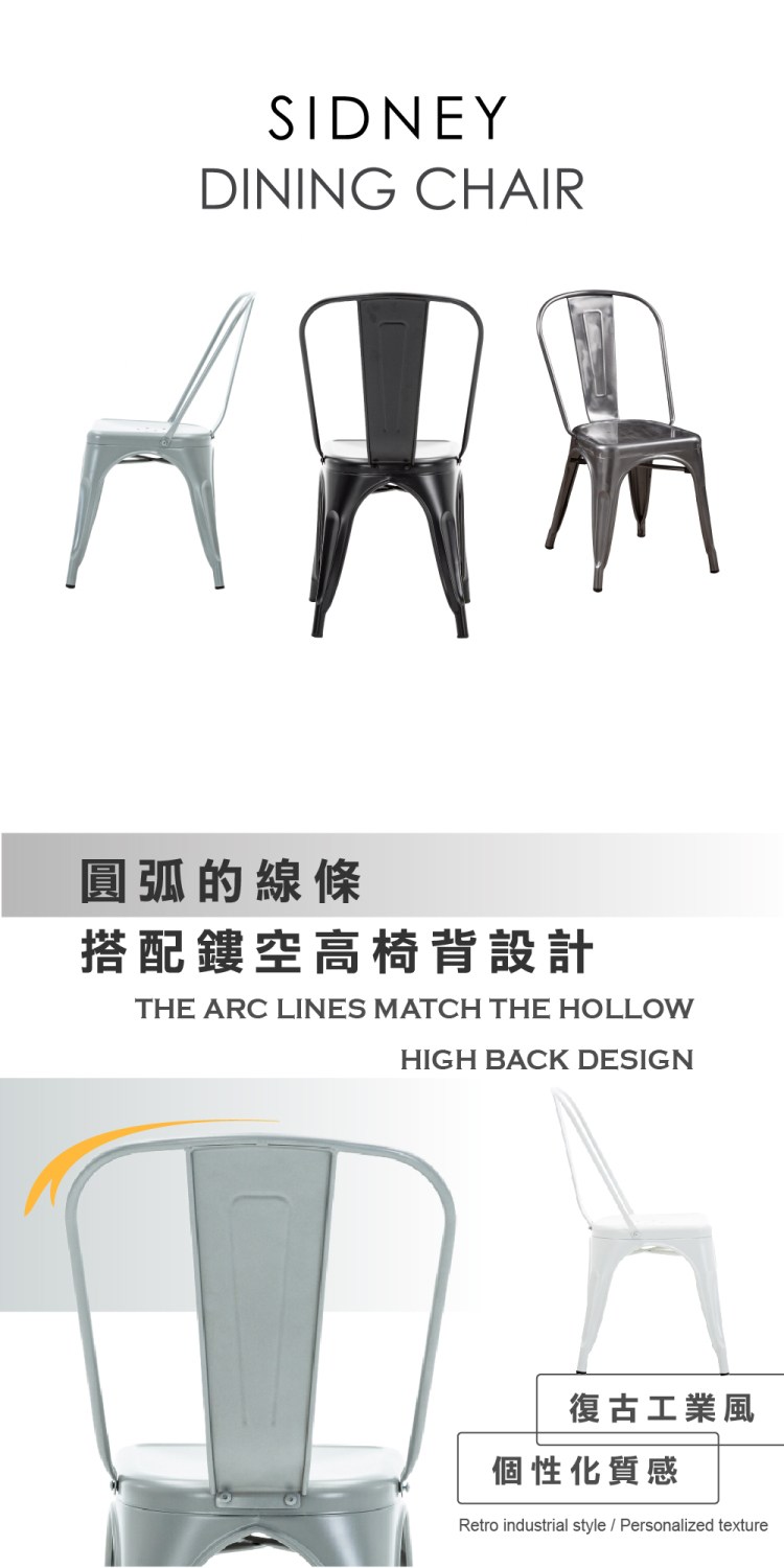 [E-home]Sidney希德尼工業風金屬高背餐椅,經典復古工業風格創造你的想像,淬鍊的金屬材質滿足個性化質感。