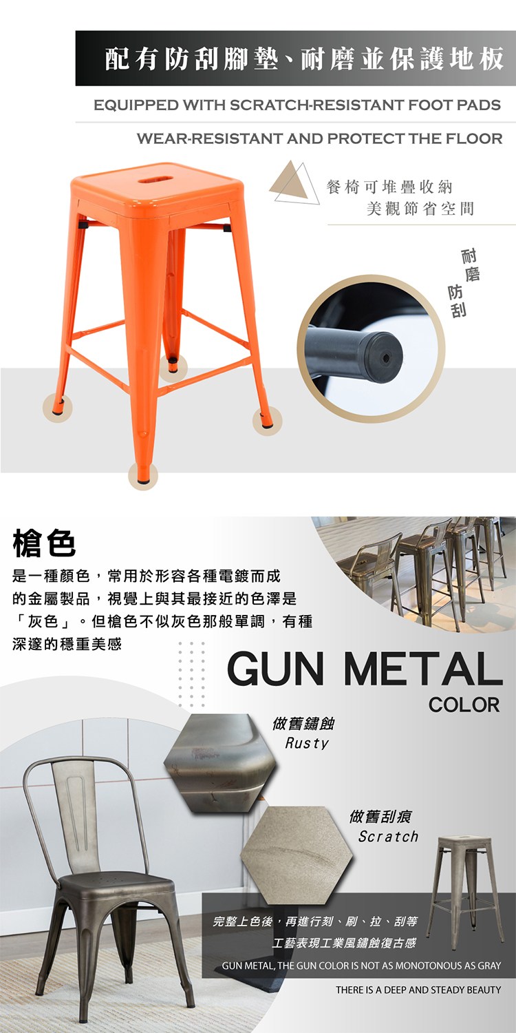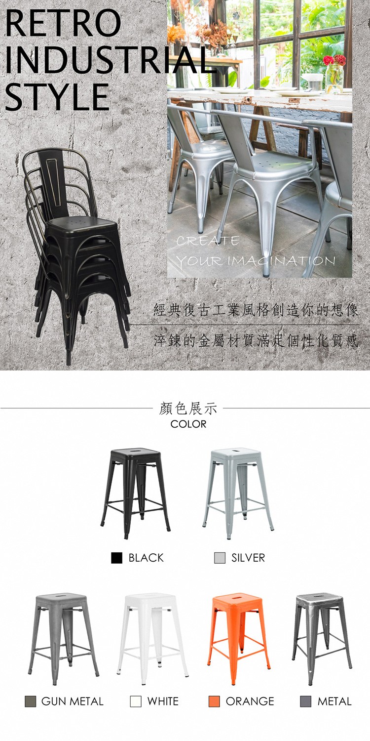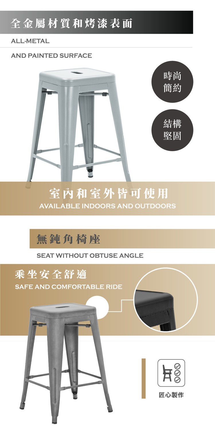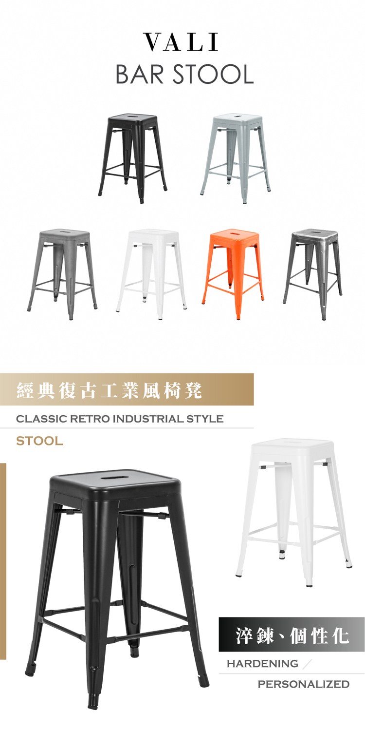 [E-home]Vali瓦力工業風可堆疊金屬吧檯椅-高61cm,經典復古工業風格創造你的想像。