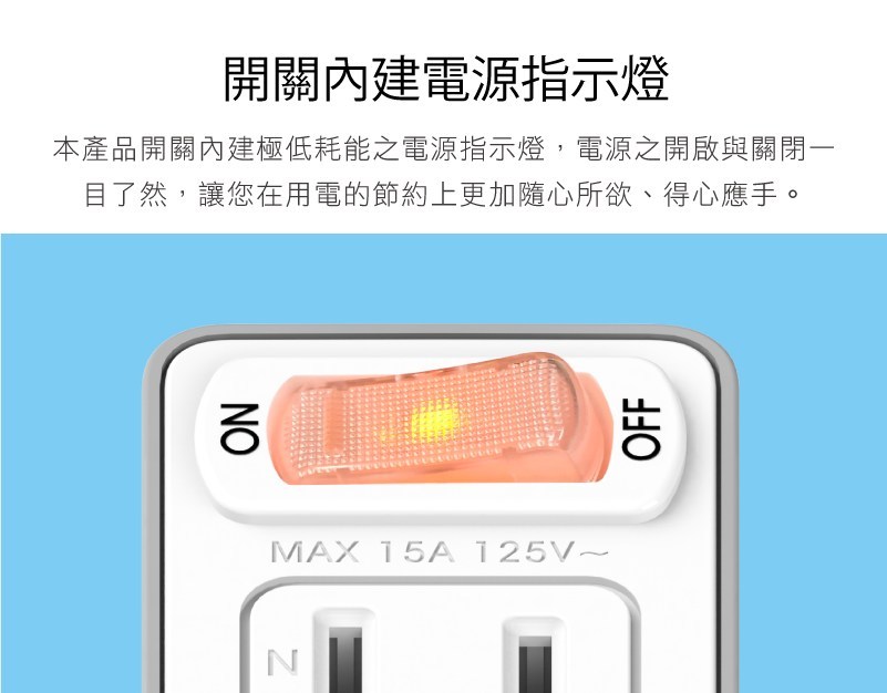 【聖岡科技Dr.AV】TNT-858S 1開 2插 分接器(過載保護 節電開關 LED指示燈)