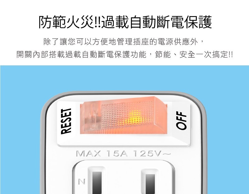 【威電】CB-3112 3轉2孔 1開1插 過載斷電 分接式插座(壁插 分接器)