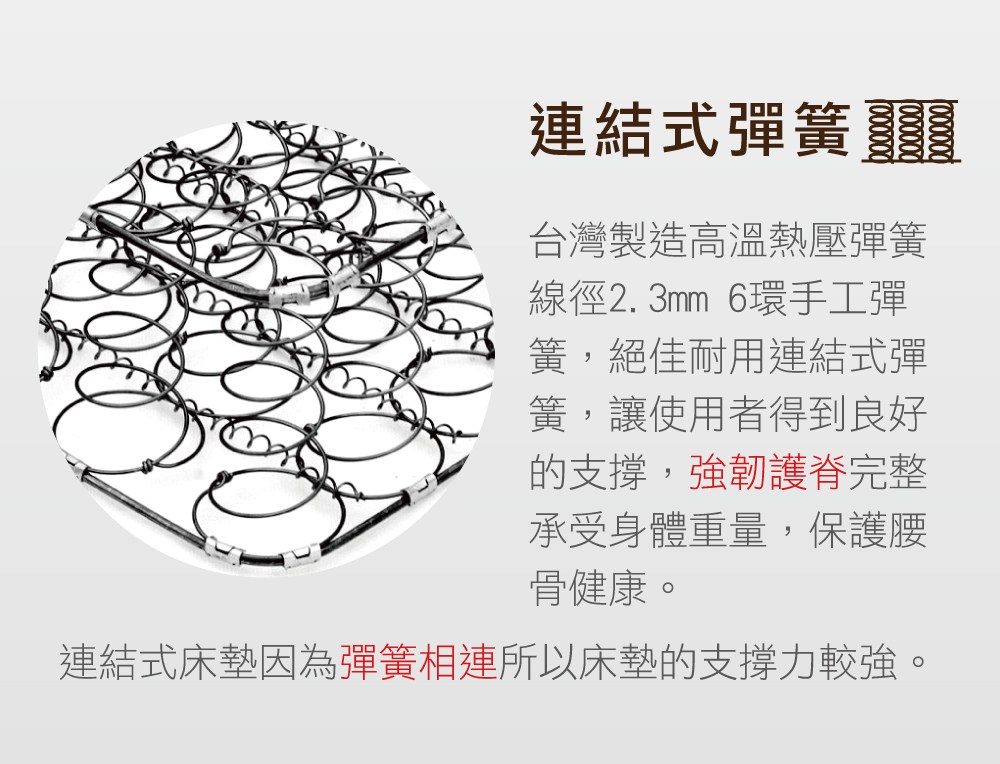 【本木】D06 抗菌連結式彈簧床墊-單人3尺