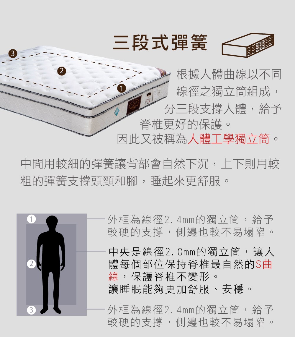 【顛覆設計】針織舒柔表布 三線 舒適健康彈簧床墊(單大3.5尺)