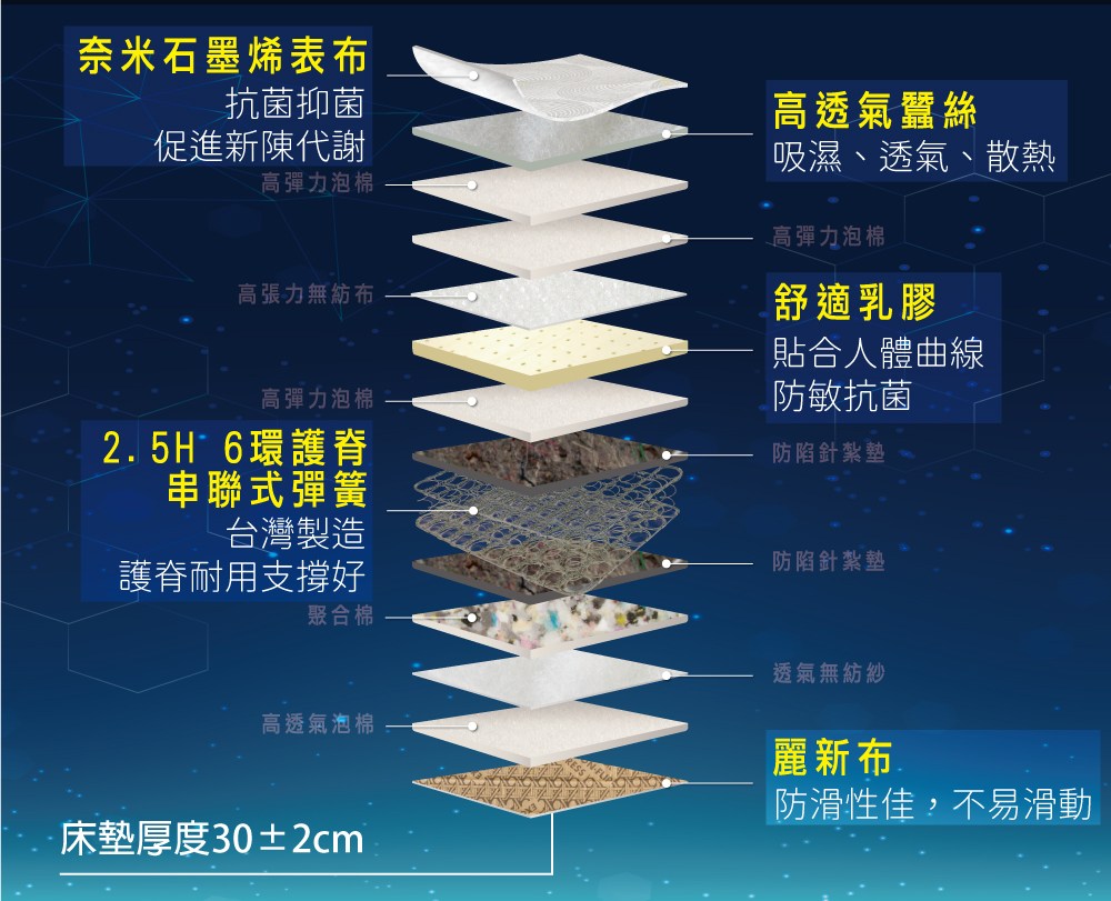 【UHO】石墨烯蠶絲乳膠2.5H護脊硬床-6尺雙人加大
