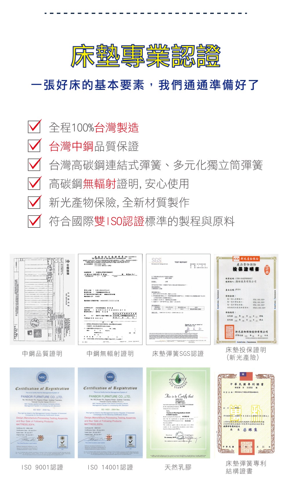 MG珍寶-飯店用-護腰型-乳膠抗菌硬式獨立筒床墊-雙人加大6尺