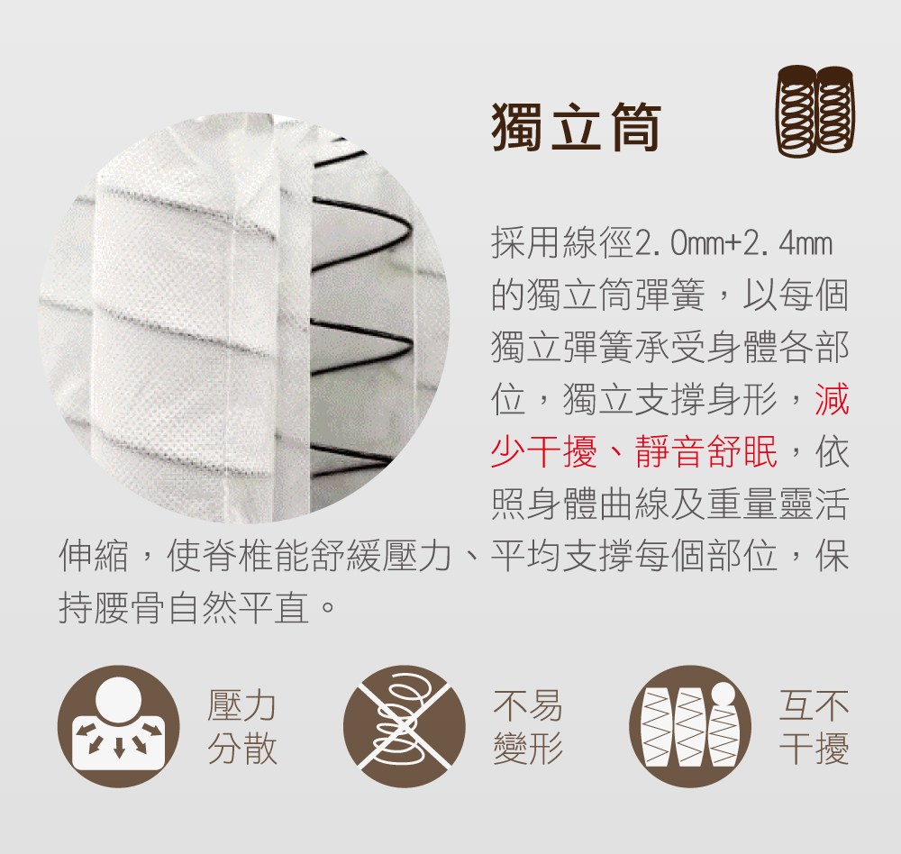 【本木】K301 石墨烯 乳膠高彈簧獨立筒床墊-單大3.5尺