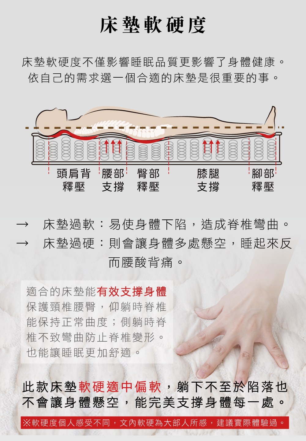 Ally愛麗 3M防潑水護背硬式彈簧床墊-雙人5尺-小孩/長輩/體重重專用-防疫好眠