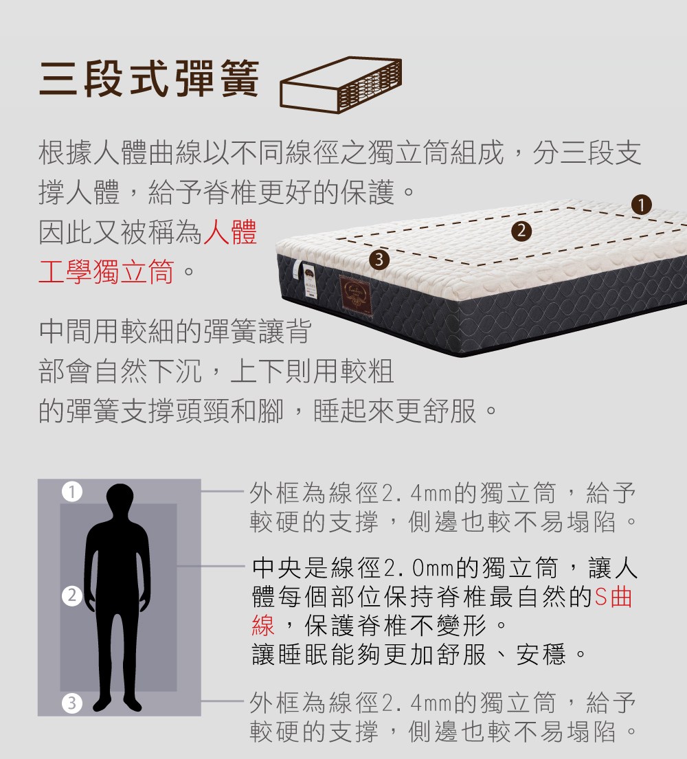 ASSARI-石墨烯雙彈簧高支撐三線獨立筒床墊-單人3尺單人3尺