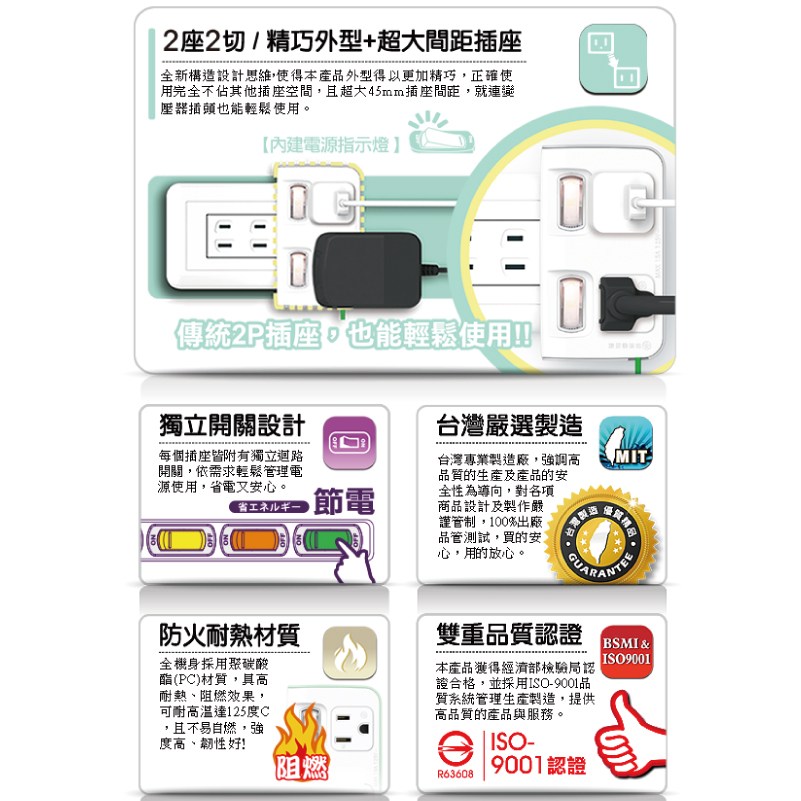 超值組 6開6插過載保護延長線 1.8米 V2 +2開2壁插 V2 迷霧灰組合