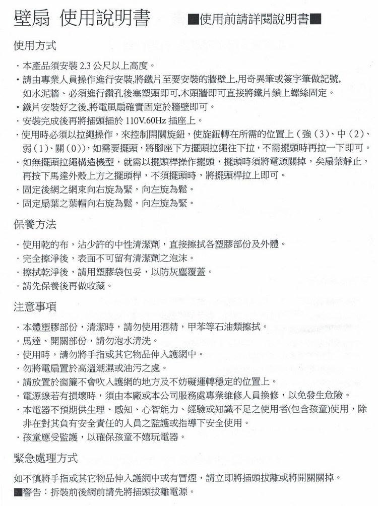 KALEPO 嘉麗寶10吋單拉壁扇 SN-508~台灣製造