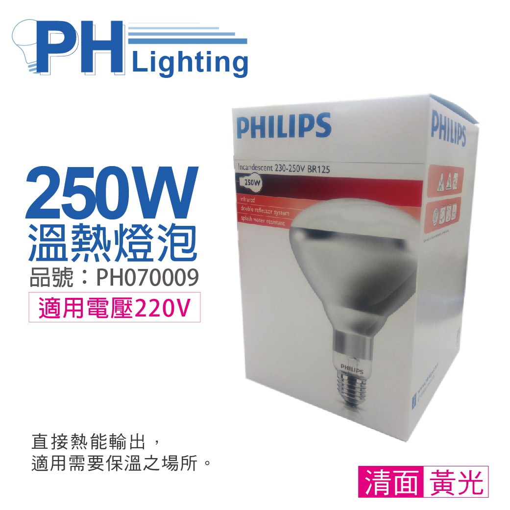 2入 PHILIPS飛利浦 250W 220V E27 溫熱燈泡 清面
