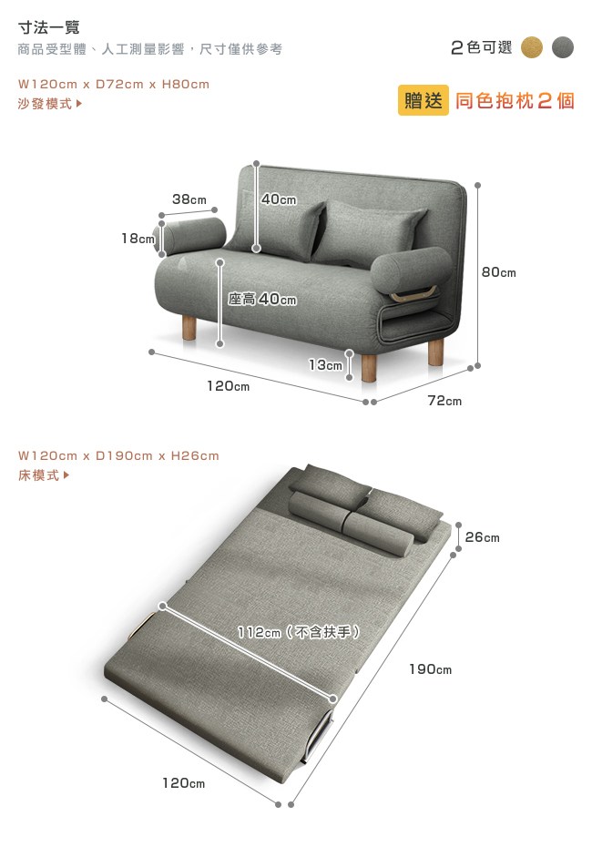 ◆ 贈送同色抱枕兩個