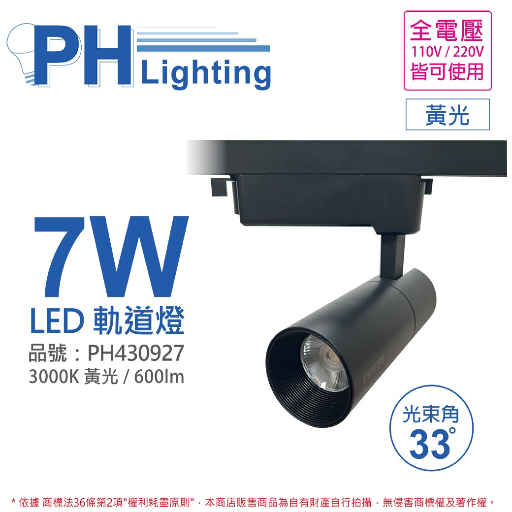 2入 PHILIPS飛利浦 LED ST033T 7W 黃光 黑殼 軌道燈