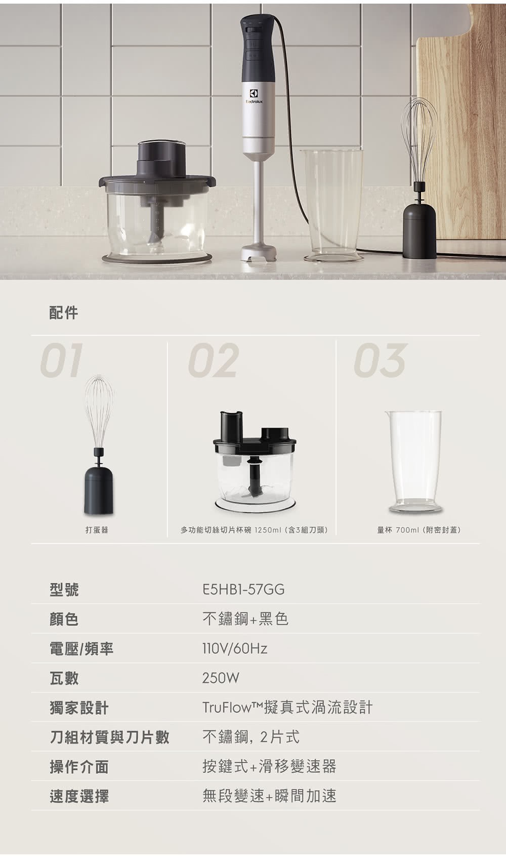 Electrolux伊萊克斯 極致美味300 手持式攪拌機 芝麻黑 E3HM1-110B【愛買】