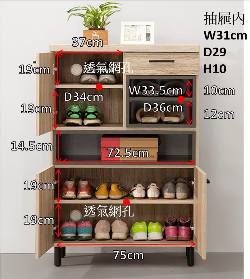 羅亞2.7尺鞋櫃 寬 80 X 深 39.5 X 高 120 公分