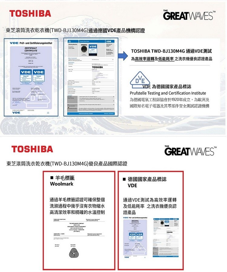 ◆節電、節水 : 德國VDE認證、國際羊毛局標籤/金級省水標章