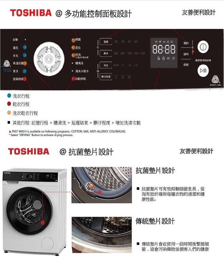 ◆乾燥機能 : 冷凝式乾衣/59分鐘快洗乾衣模式/旋風乾衣去味功能。