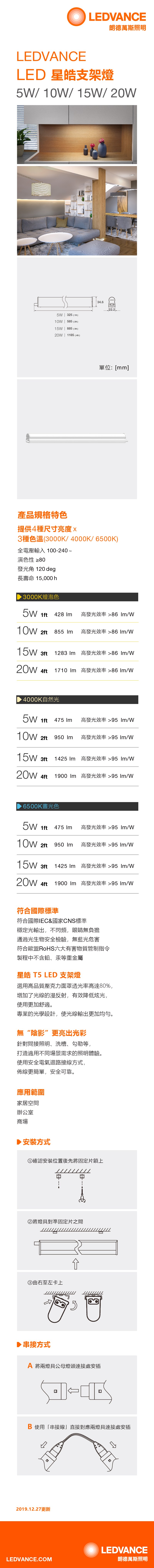 歐司朗 星皓5W LED支架燈 1尺 白光