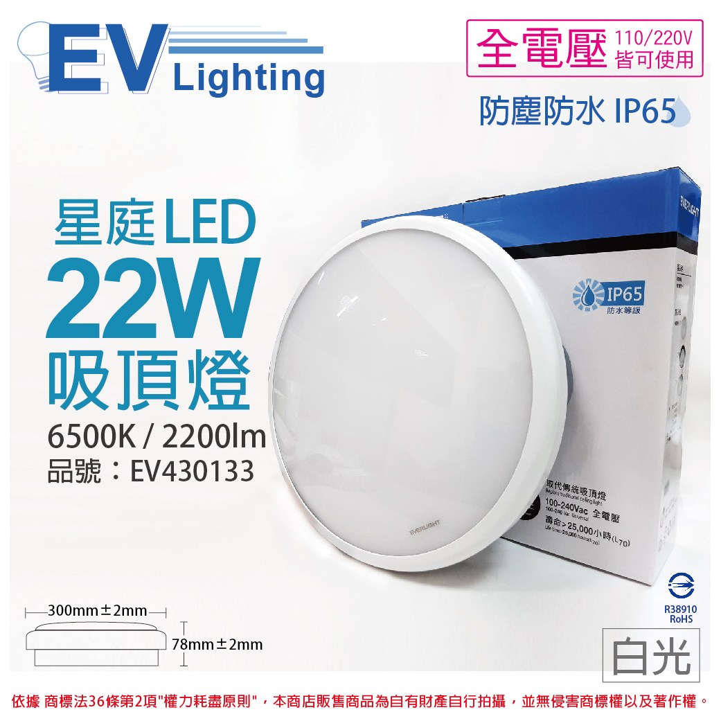 億光 LED 星庭 22W 6500K 白光 全電壓 IP65 吸頂燈